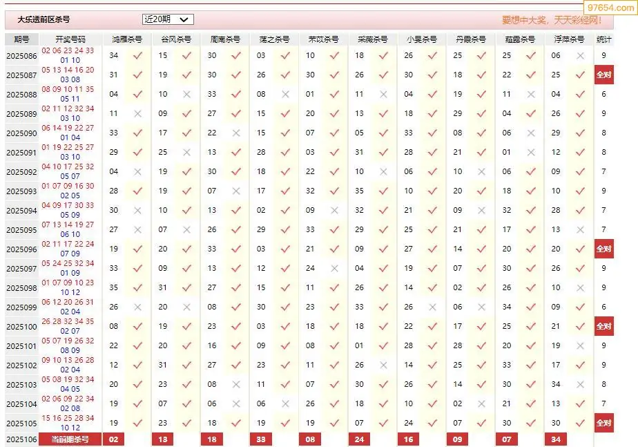 106期大乐透彩经十大专家前区杀号汇总