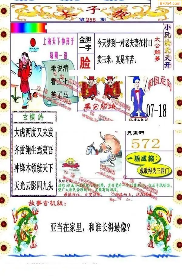 255期福彩太子报红五图库