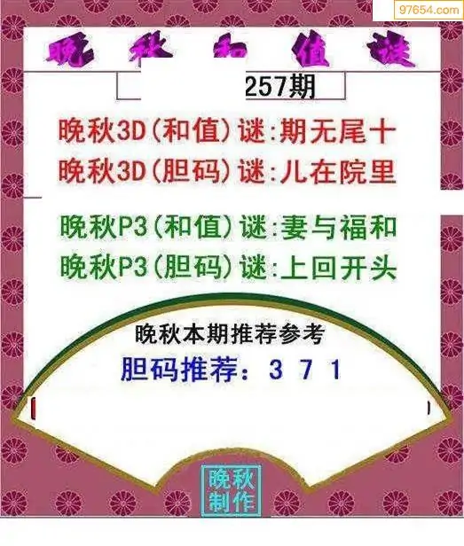 25257期晚秋和值谜胆码推荐