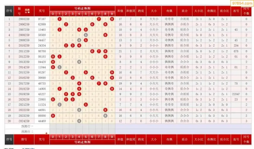 259期排列三历史号码对比图+数据走势分析
