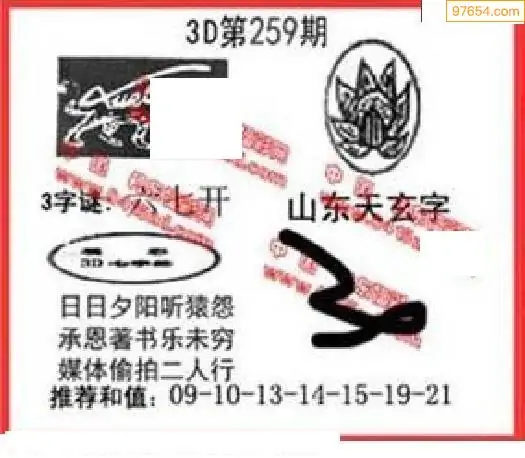 2025年264期福彩3d怪字神贴