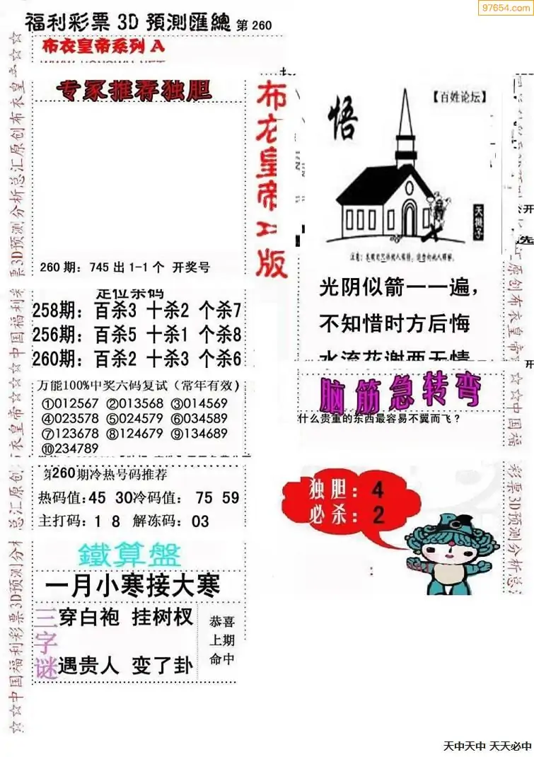 福彩264期3d真精华布衣+布衣早报(转载)