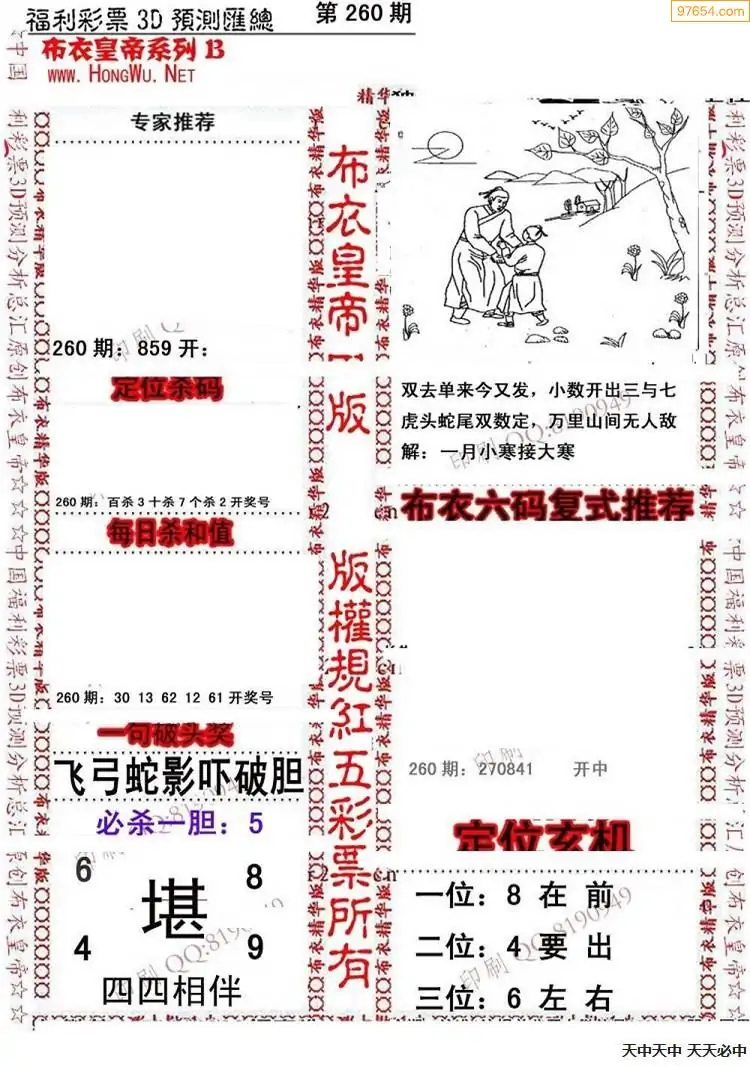 264期3D彩吧图库精华布衣图123456分享