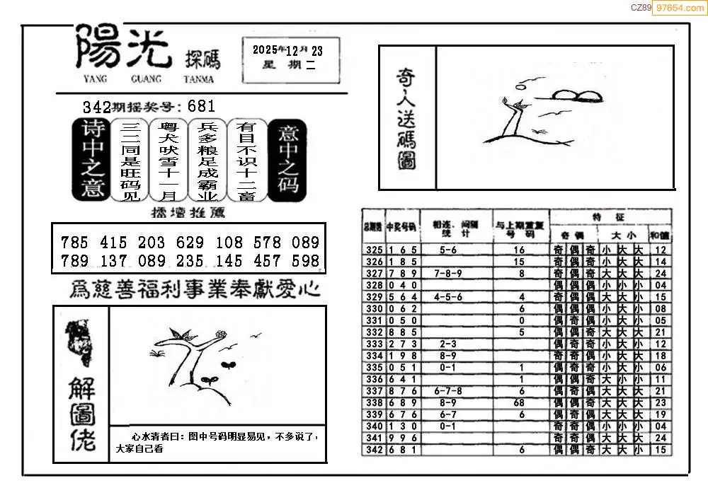 25343期福彩3D阳光探码图