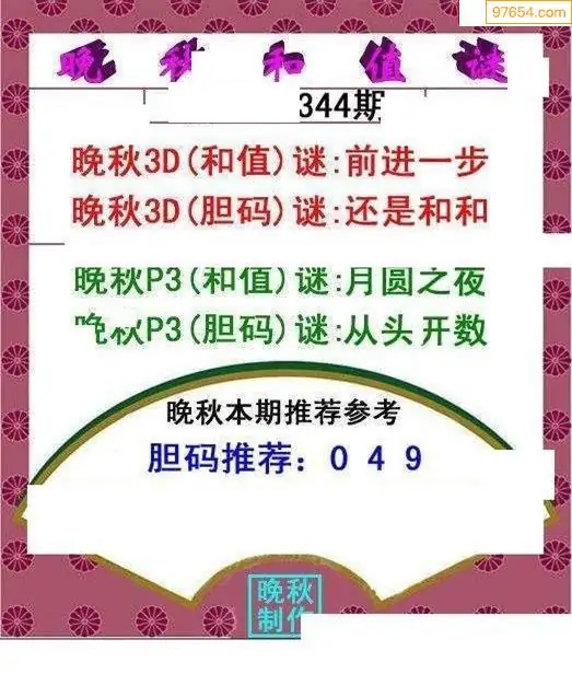25344期晚秋和值谜胆码推荐