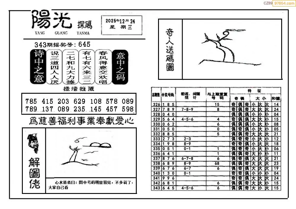 25344期福彩3D阳光探码图