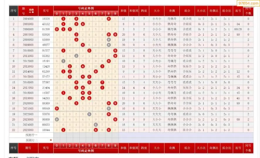 003期排列三历史号码对比图+数据走势分析