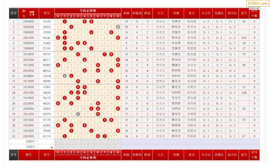 005期排列三历史号码对比图+数据走势分析