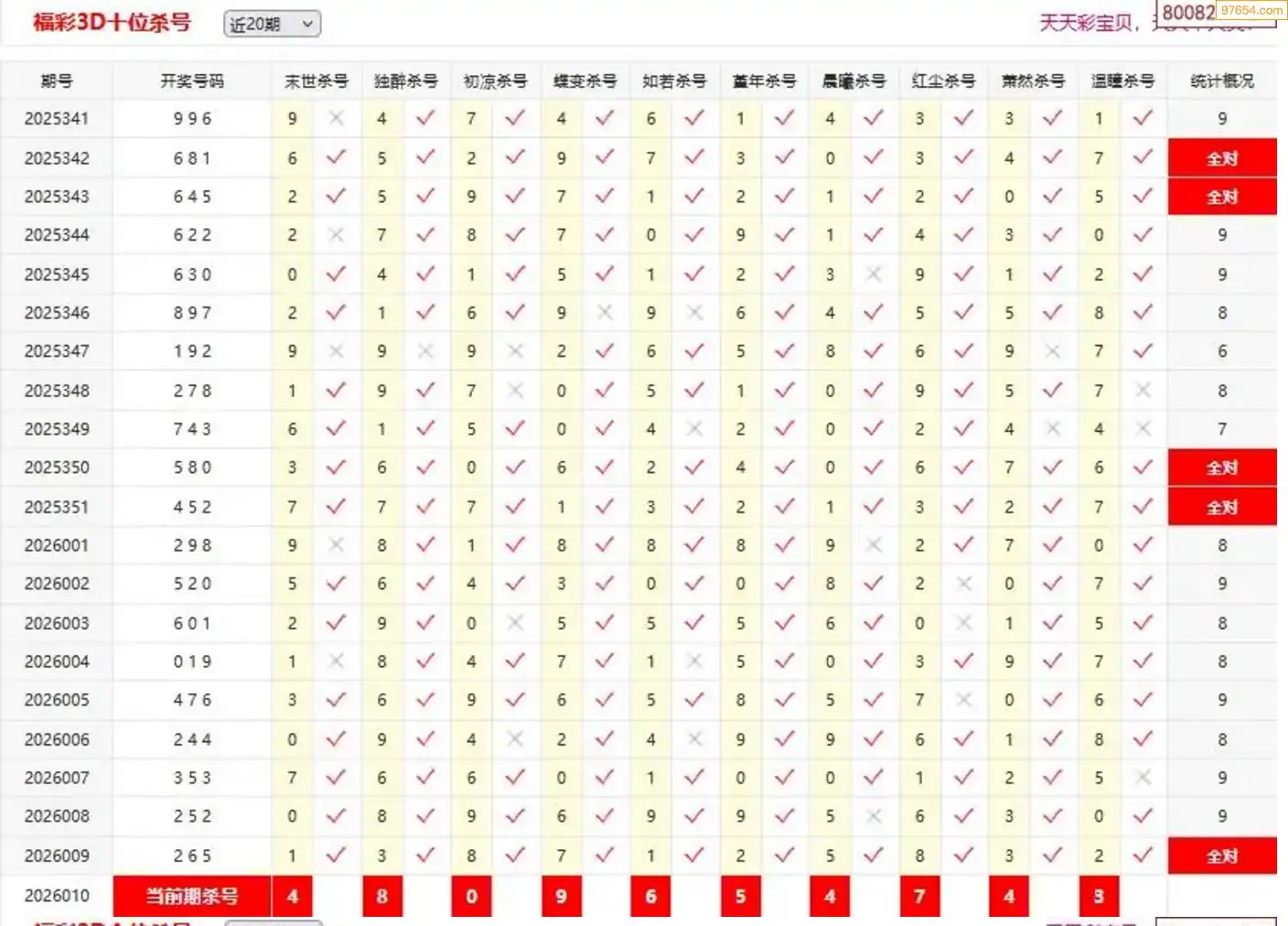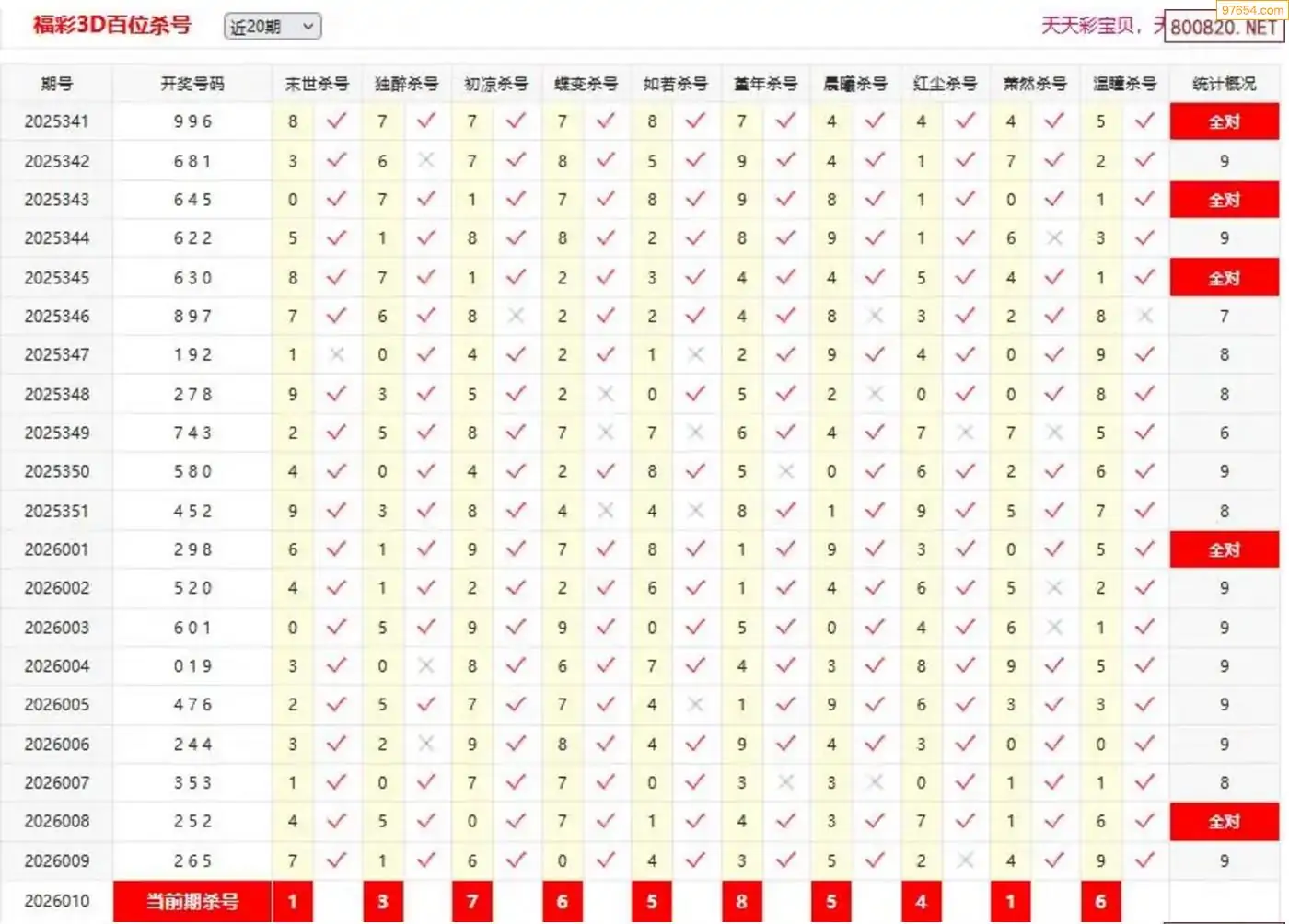 26010期彩宝贝福彩3D定位杀号