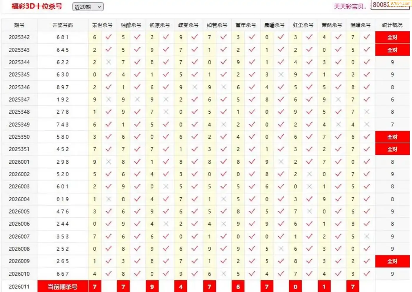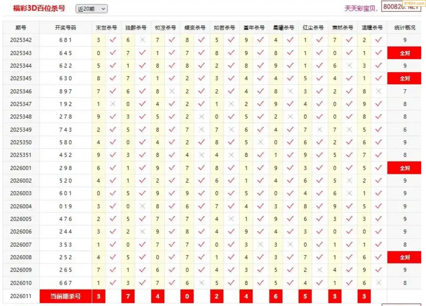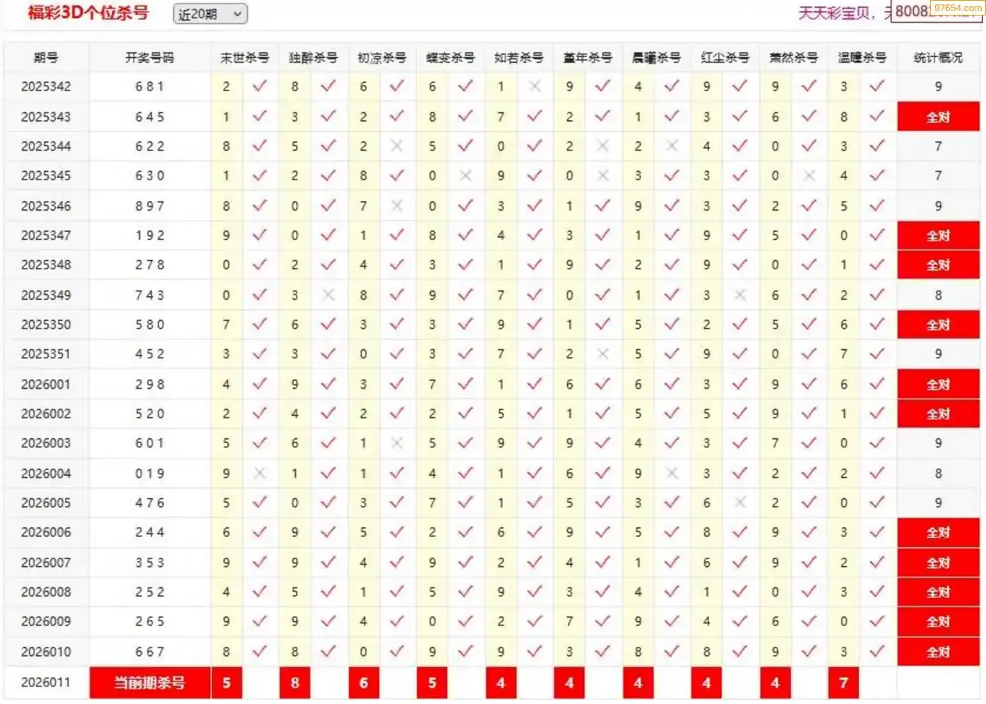 26011期彩宝贝福彩3D定位杀号