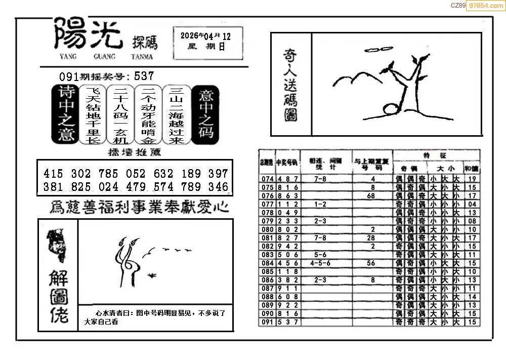 26092期福彩3D阳光探码图