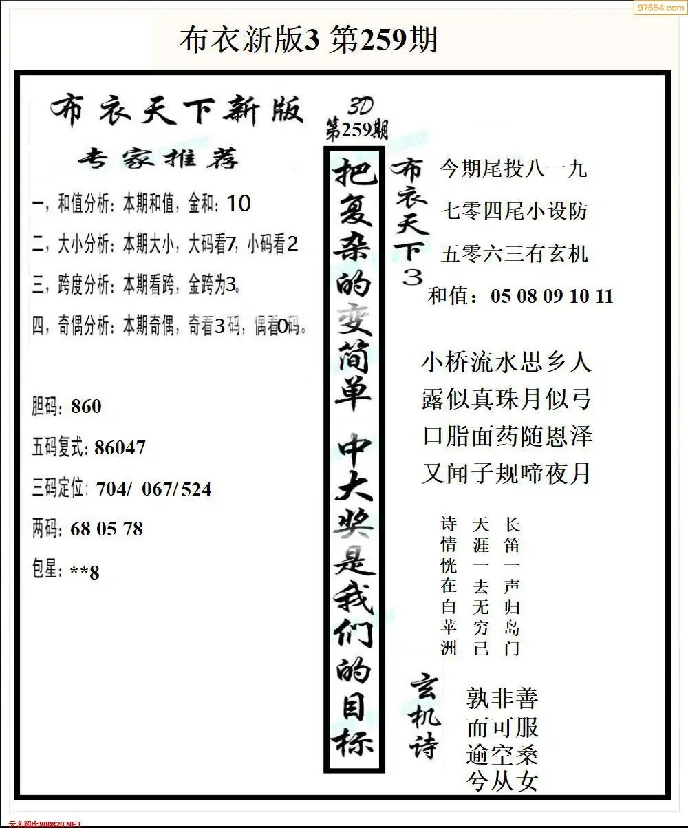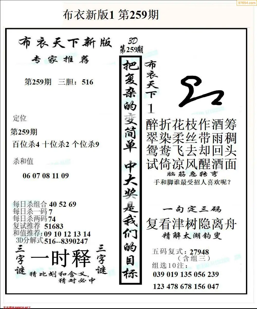 福彩265期3d真精华布衣+布衣早报(转载)