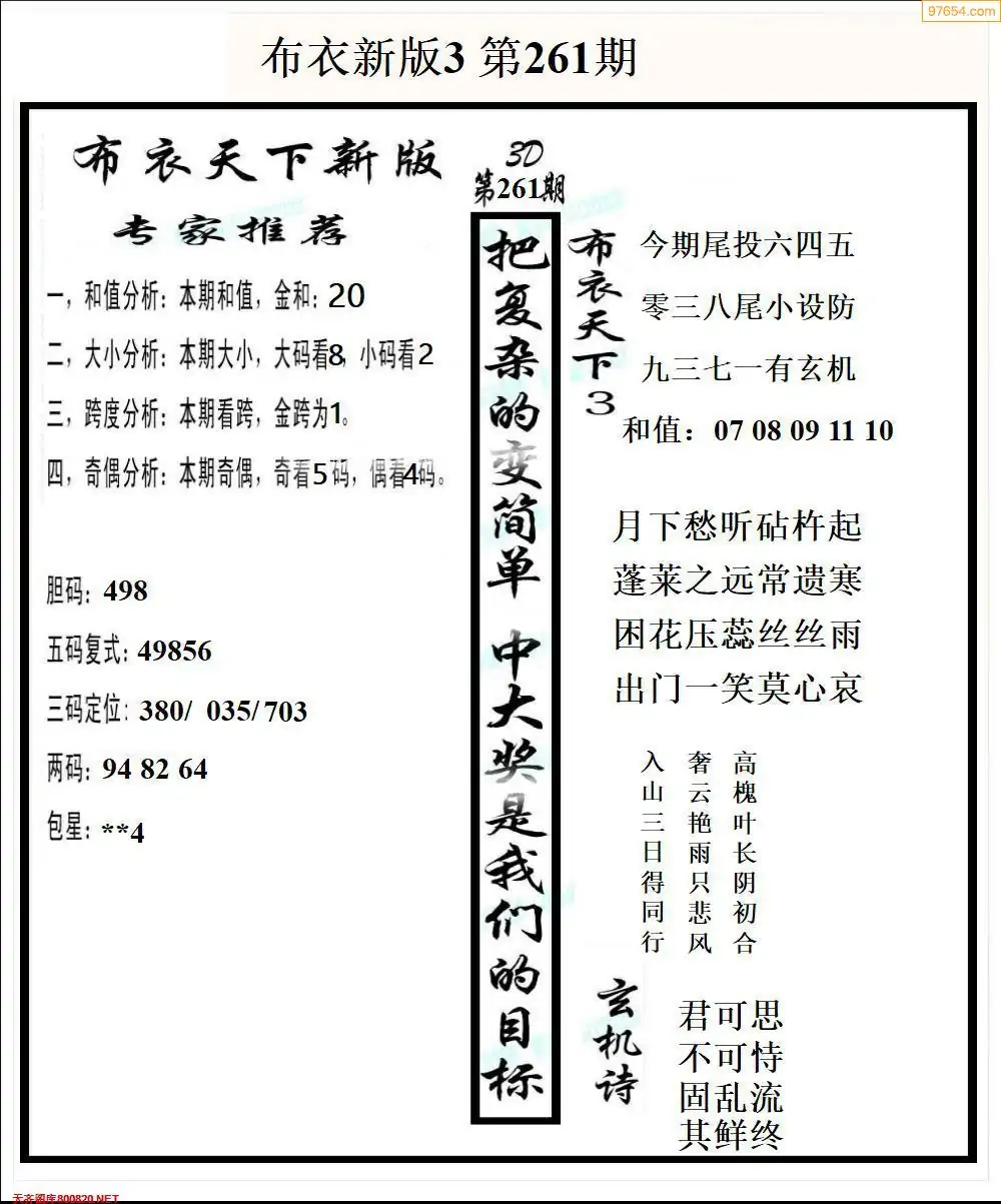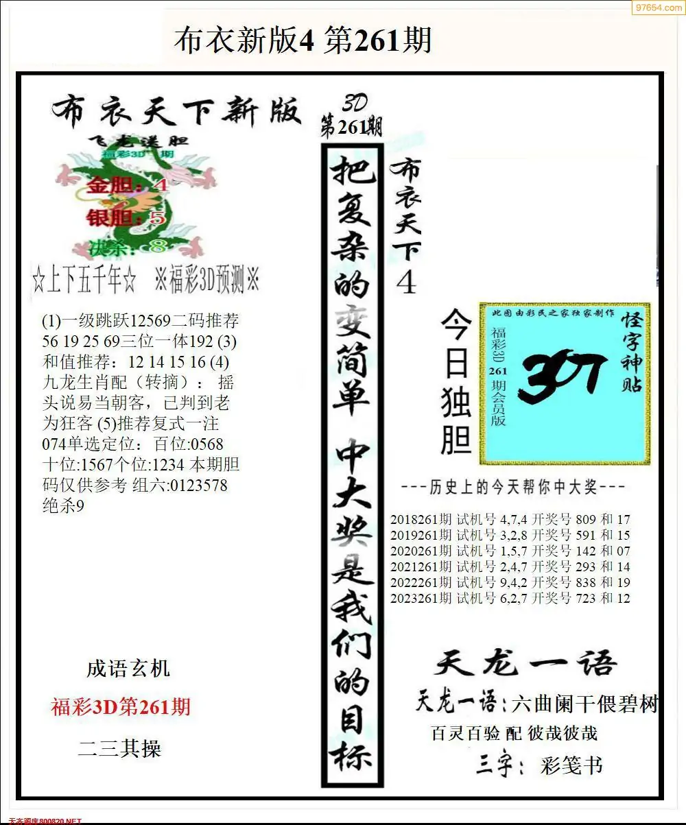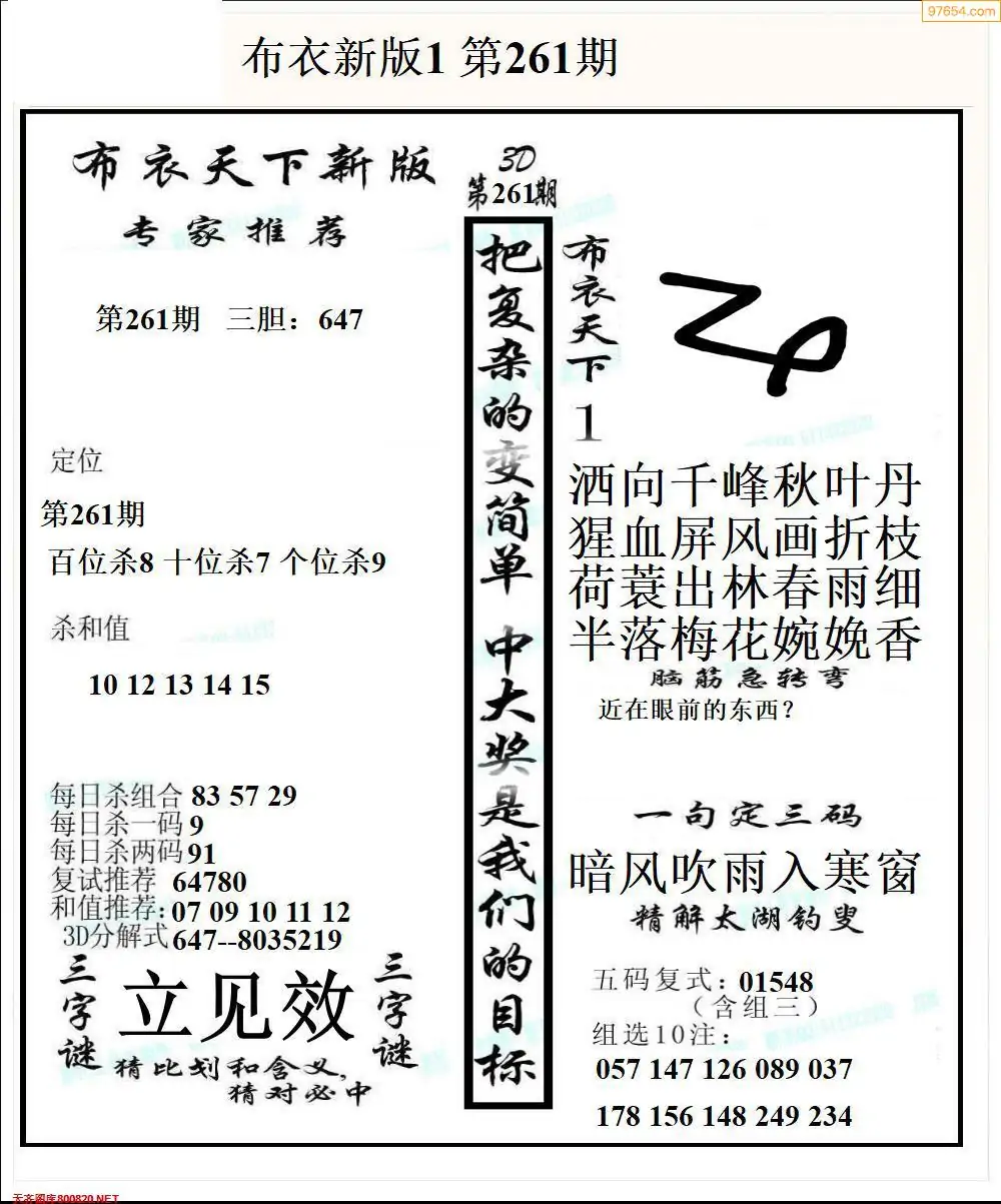 福彩265期3d真精华布衣+布衣早报(转载)