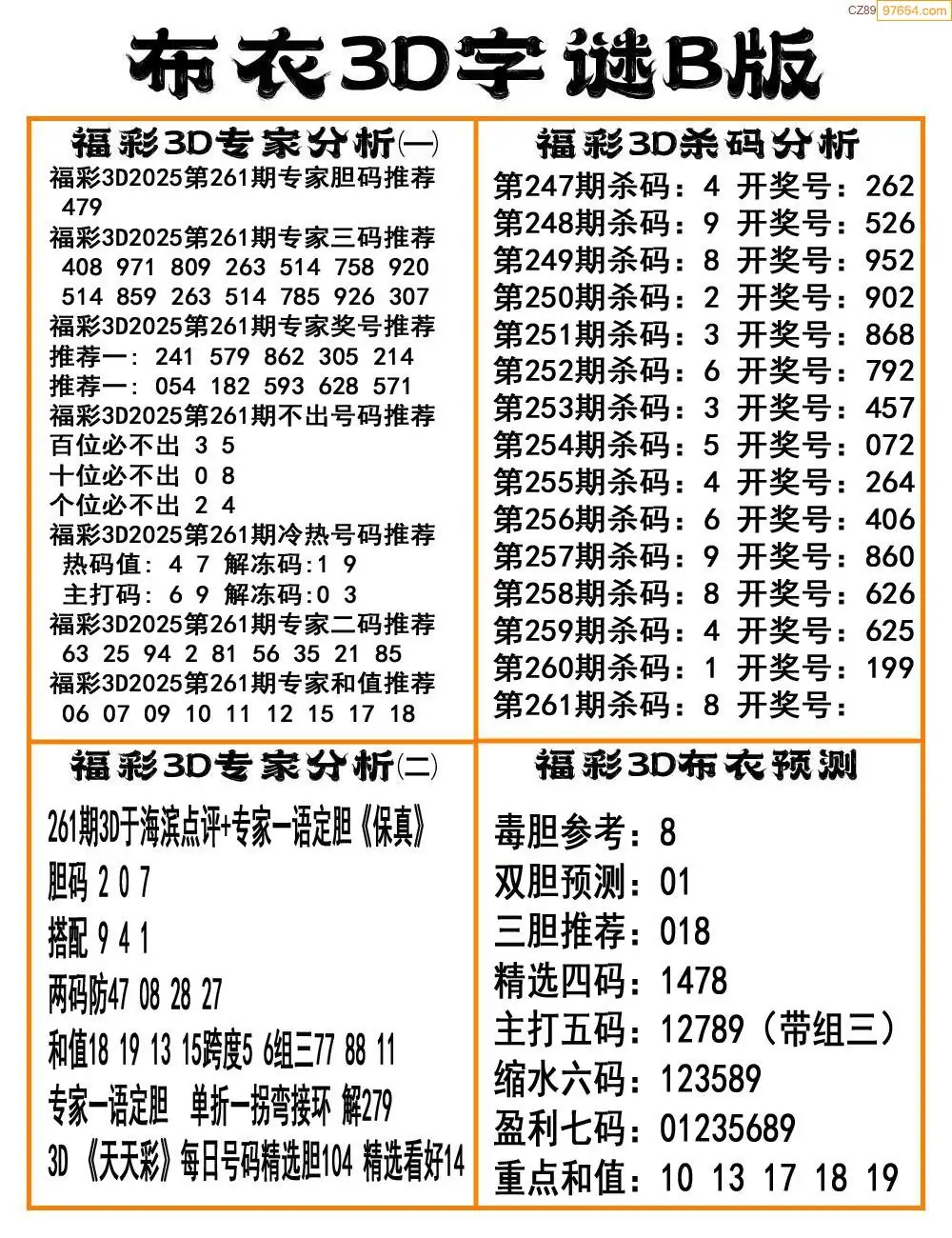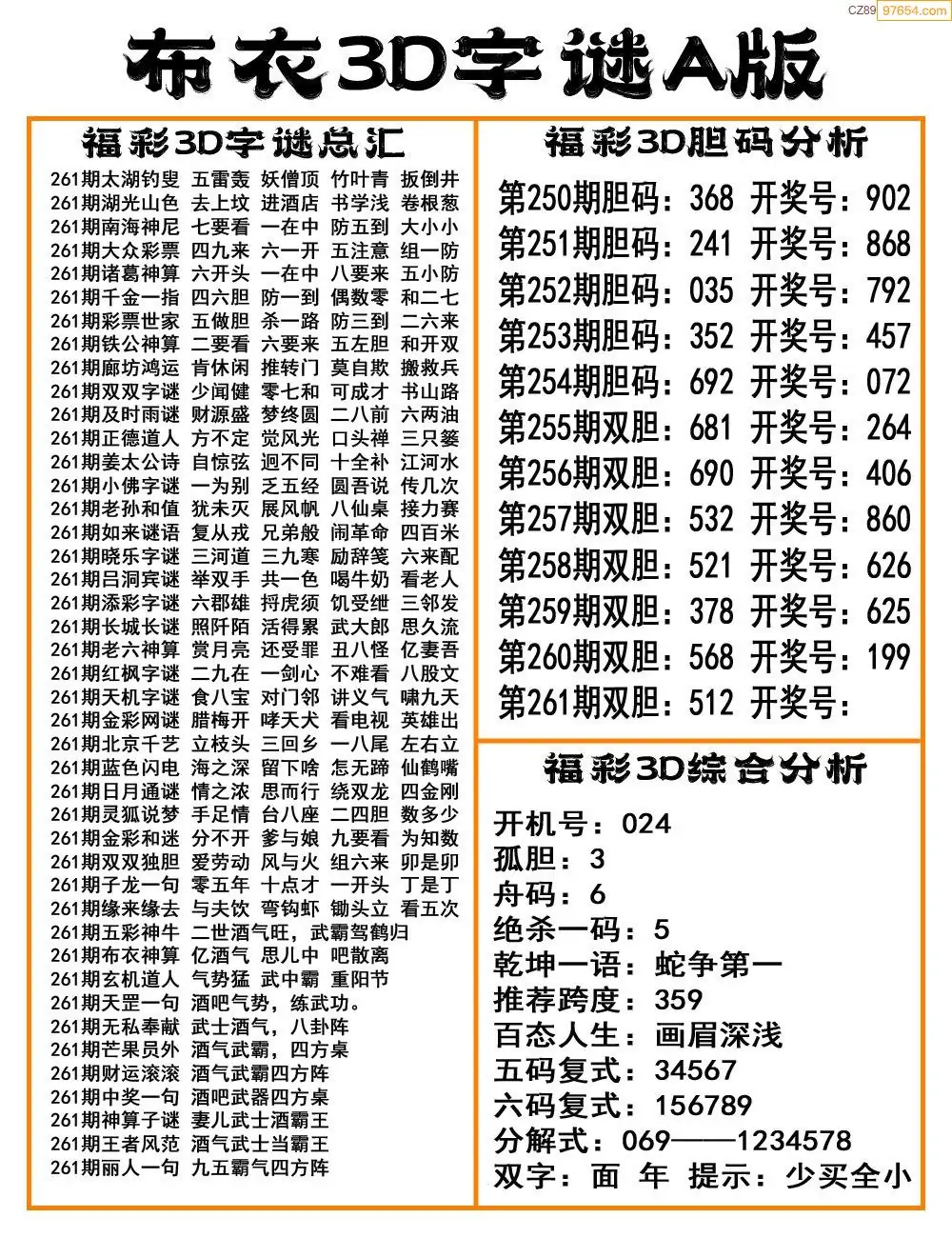 福彩25261期布衣3d字谜ab