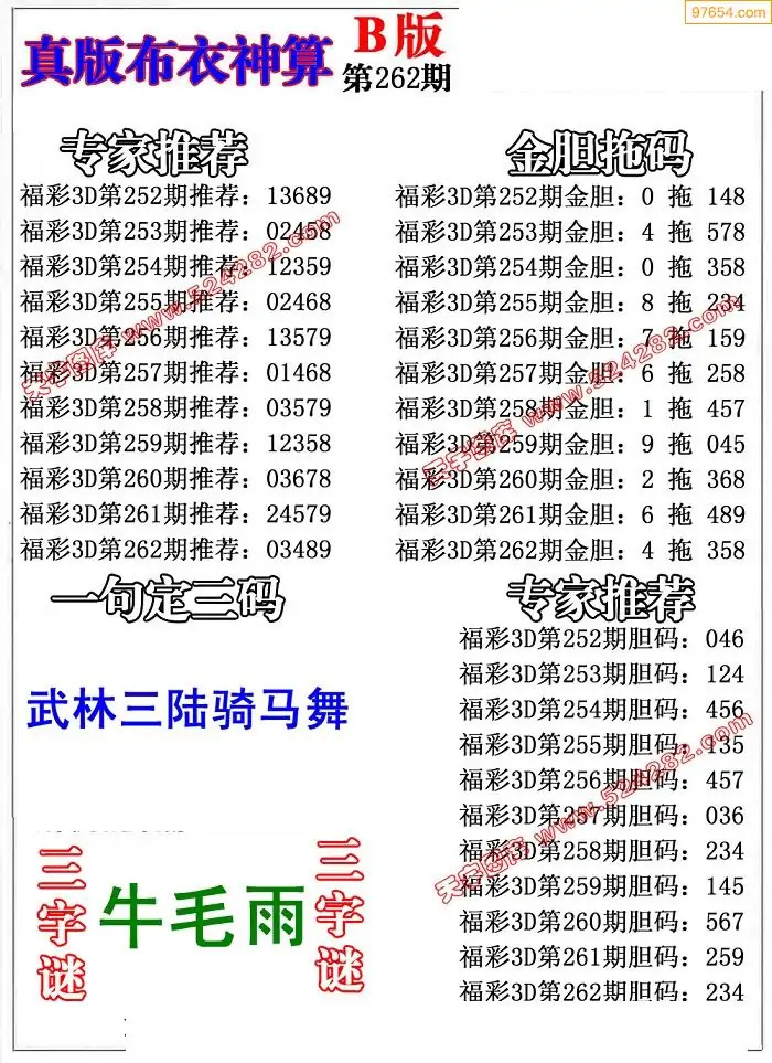 262期真版布衣神算专家推荐