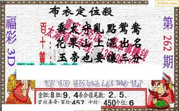福彩3d262期新禧布衣定位杀号