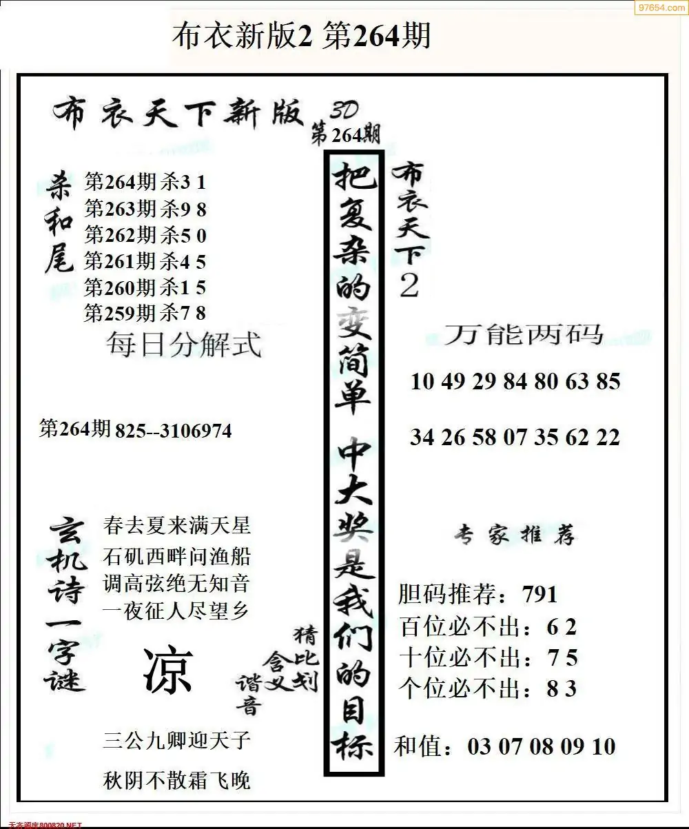 福彩264期3d真精华布衣+布衣早报(转载)