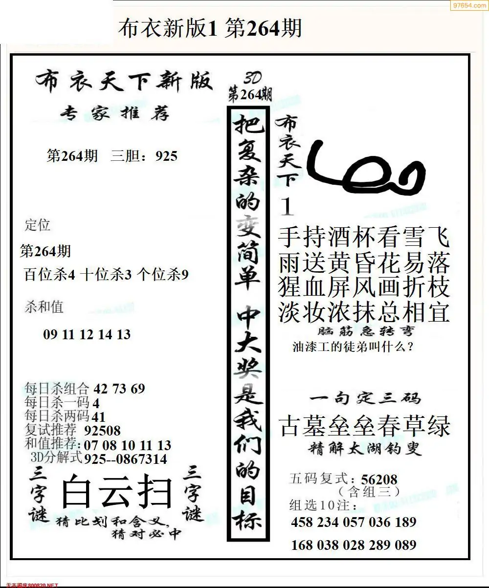 264期真精布衣3d正版布衣123456(原创)