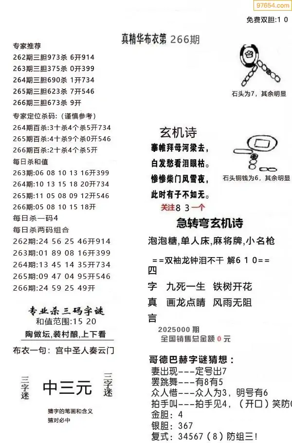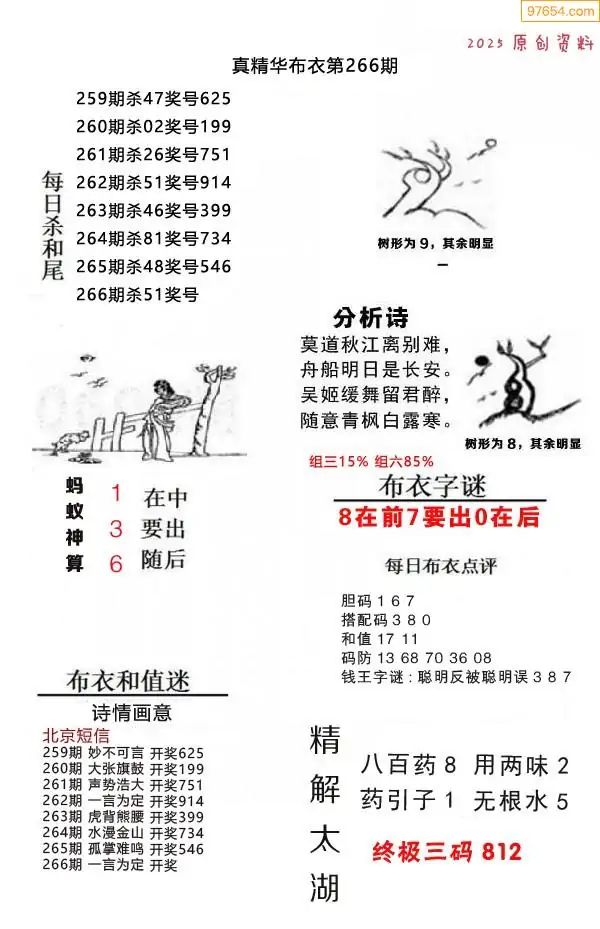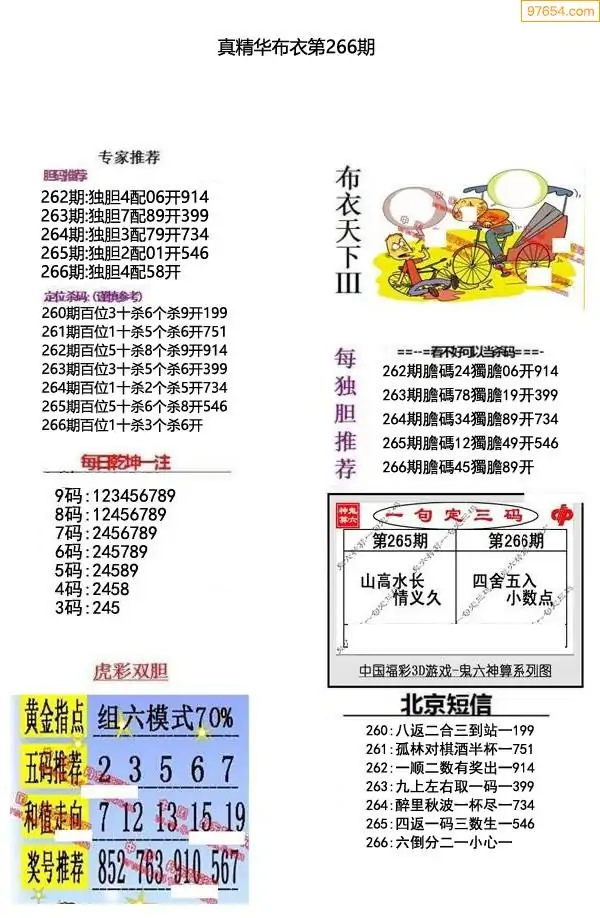 福彩266期3d真精华布衣+布衣早报(转载)