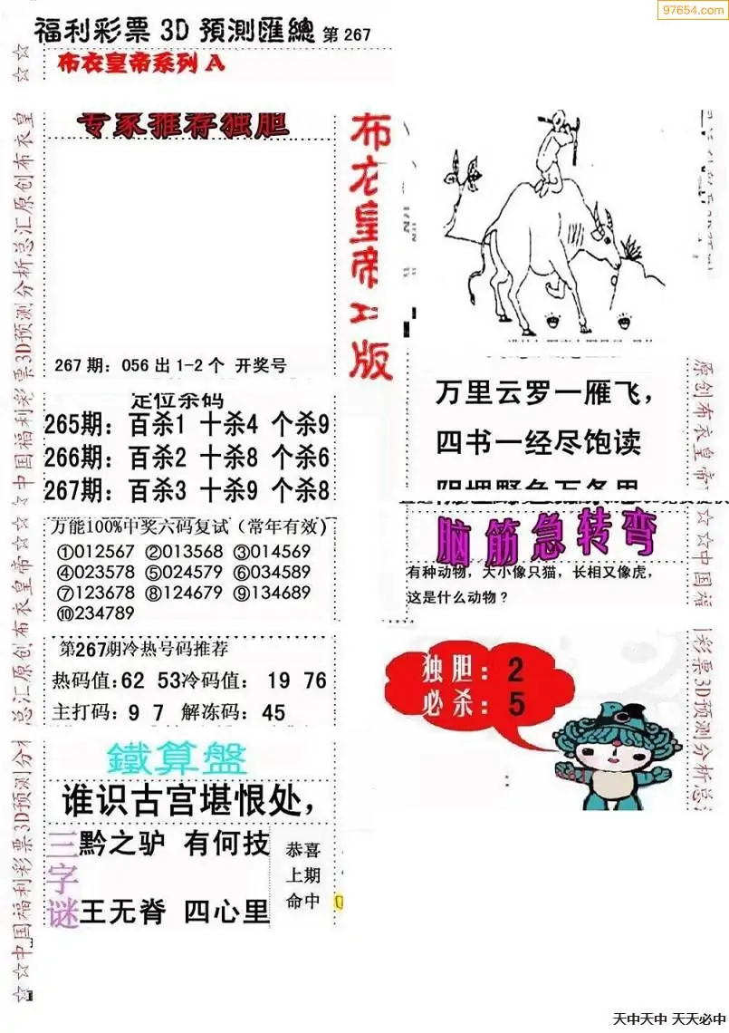 福彩267期3d真精华布衣+布衣早报(转载)