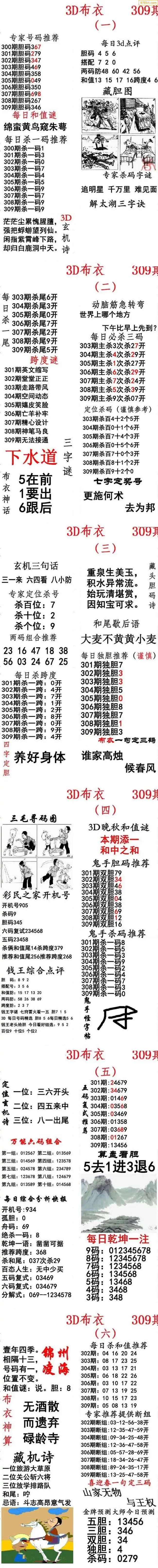309期3D彩吧图库精华布衣图123456分享
