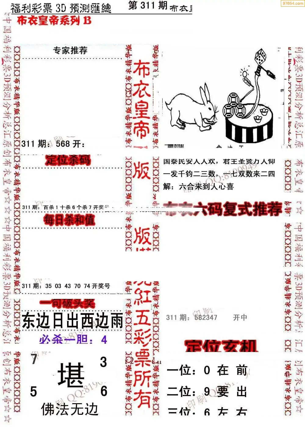 福彩311期3d真精华布衣+布衣早报(转载)