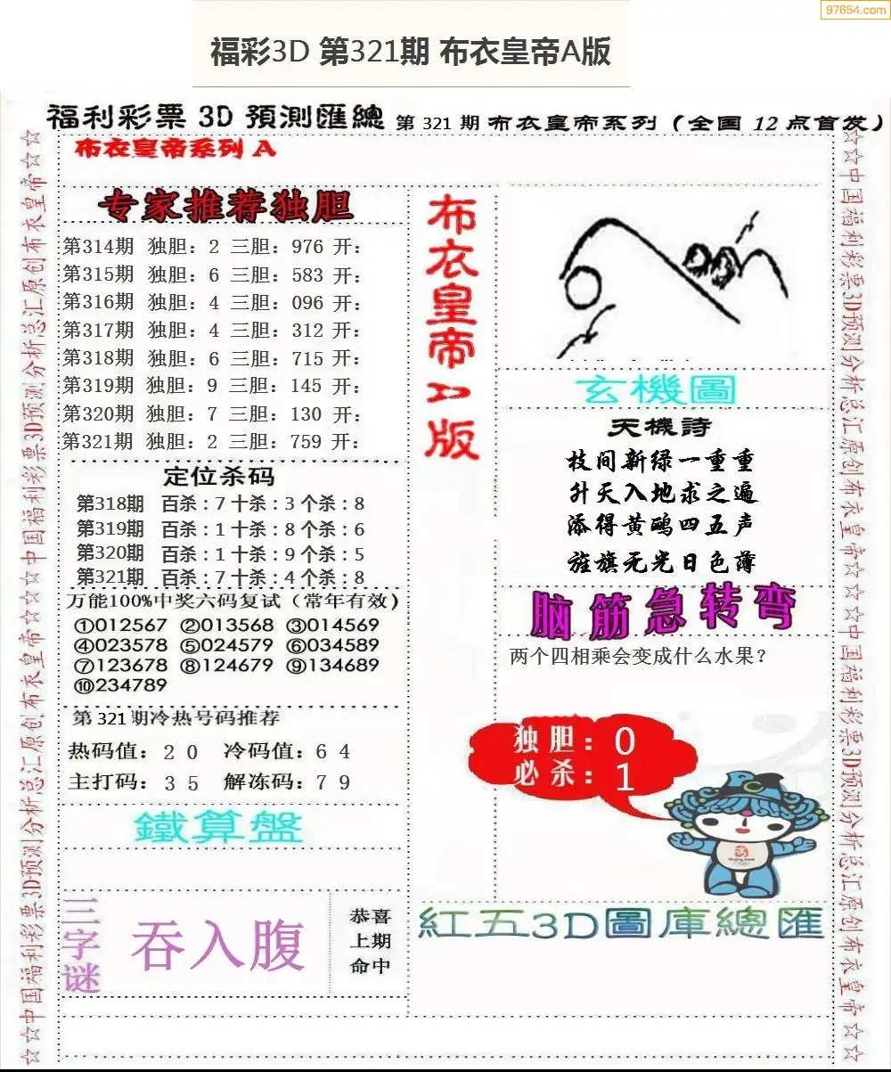 25321期3D布衣皇帝AB(新版)