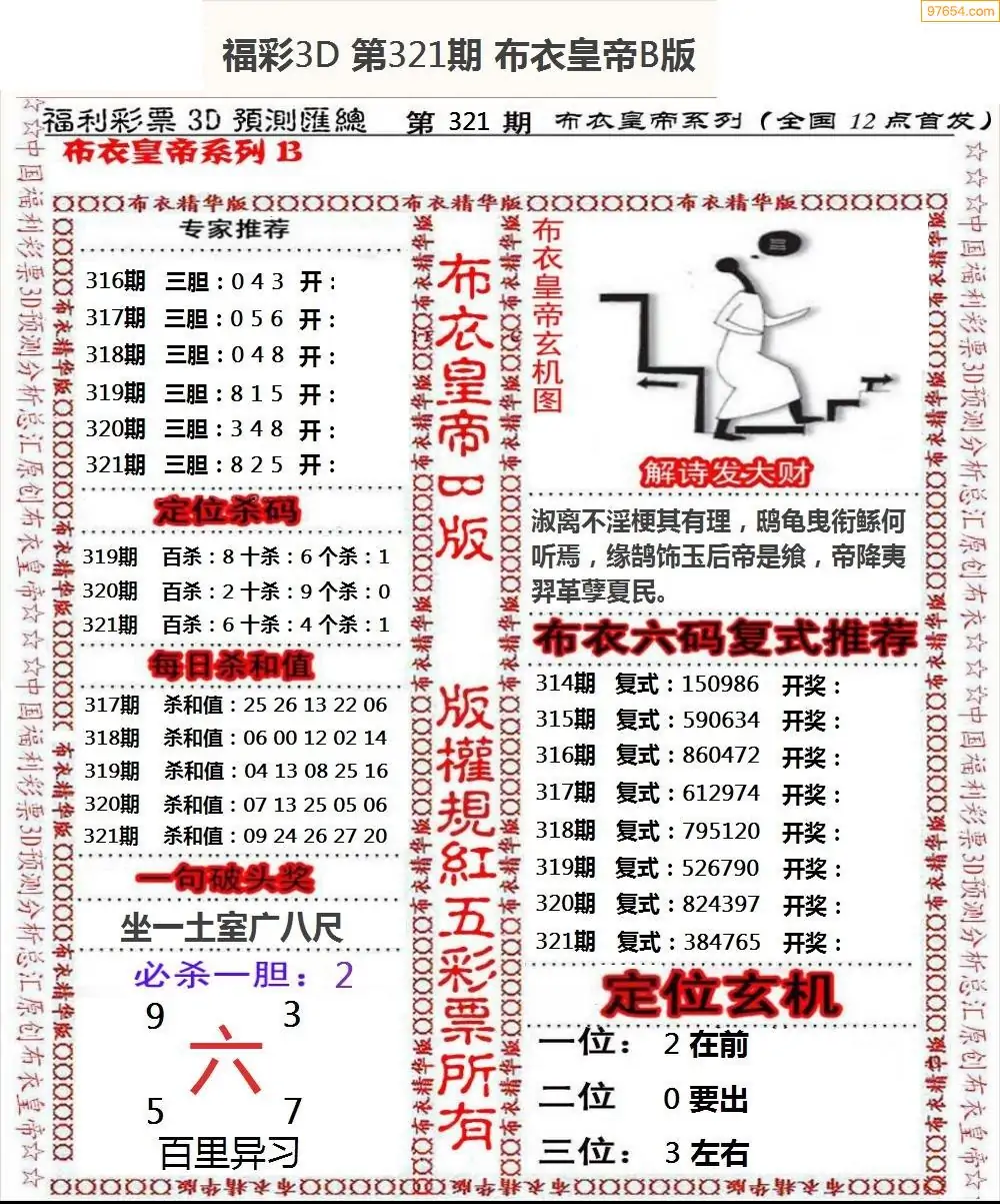 021期3D彩吧图库精华布衣图123456分享