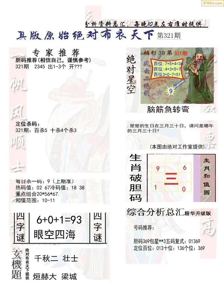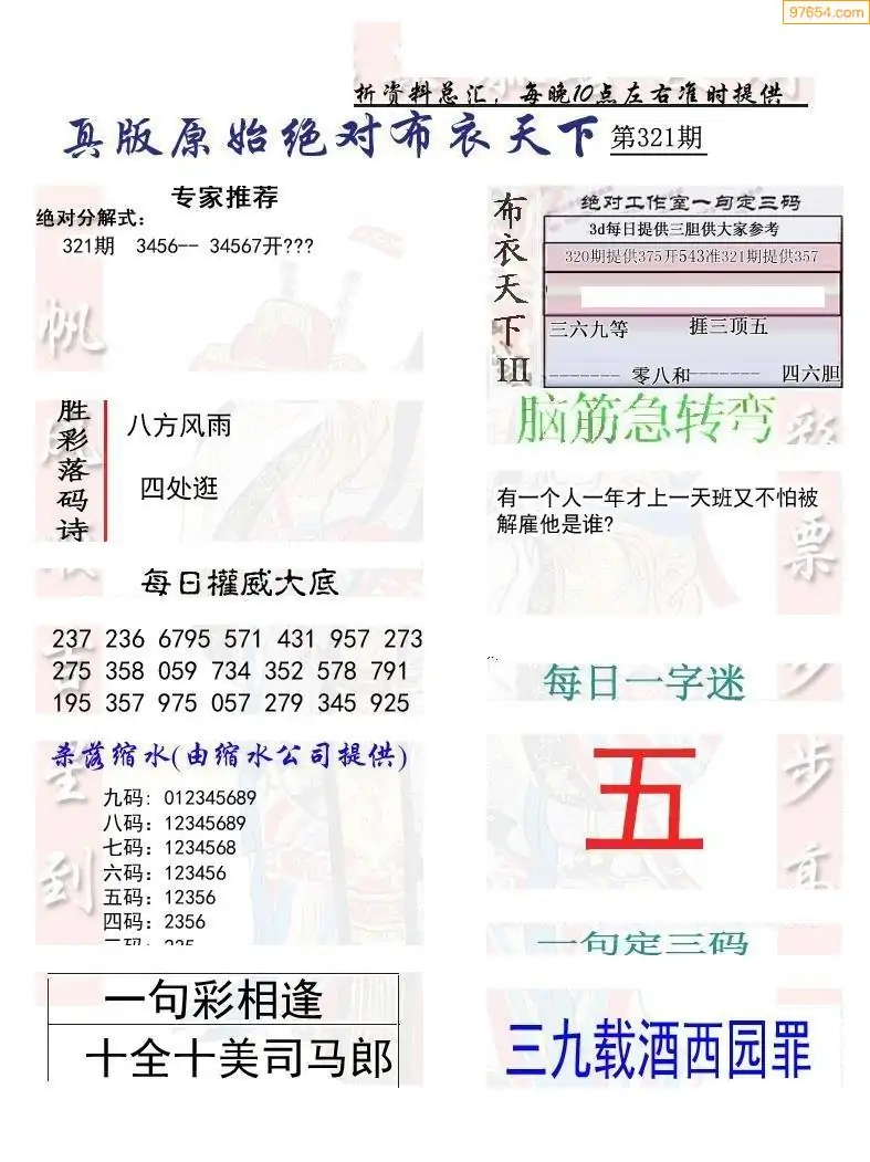 021期3D彩吧图库精华布衣图123456分享