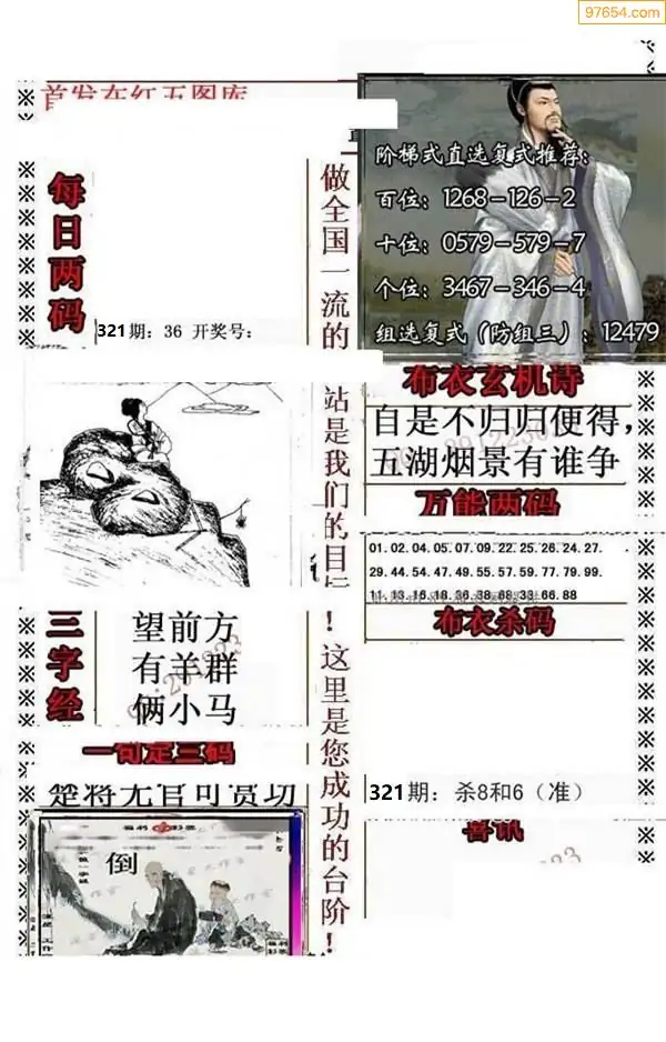 021期3D彩吧图库精华布衣图123456分享