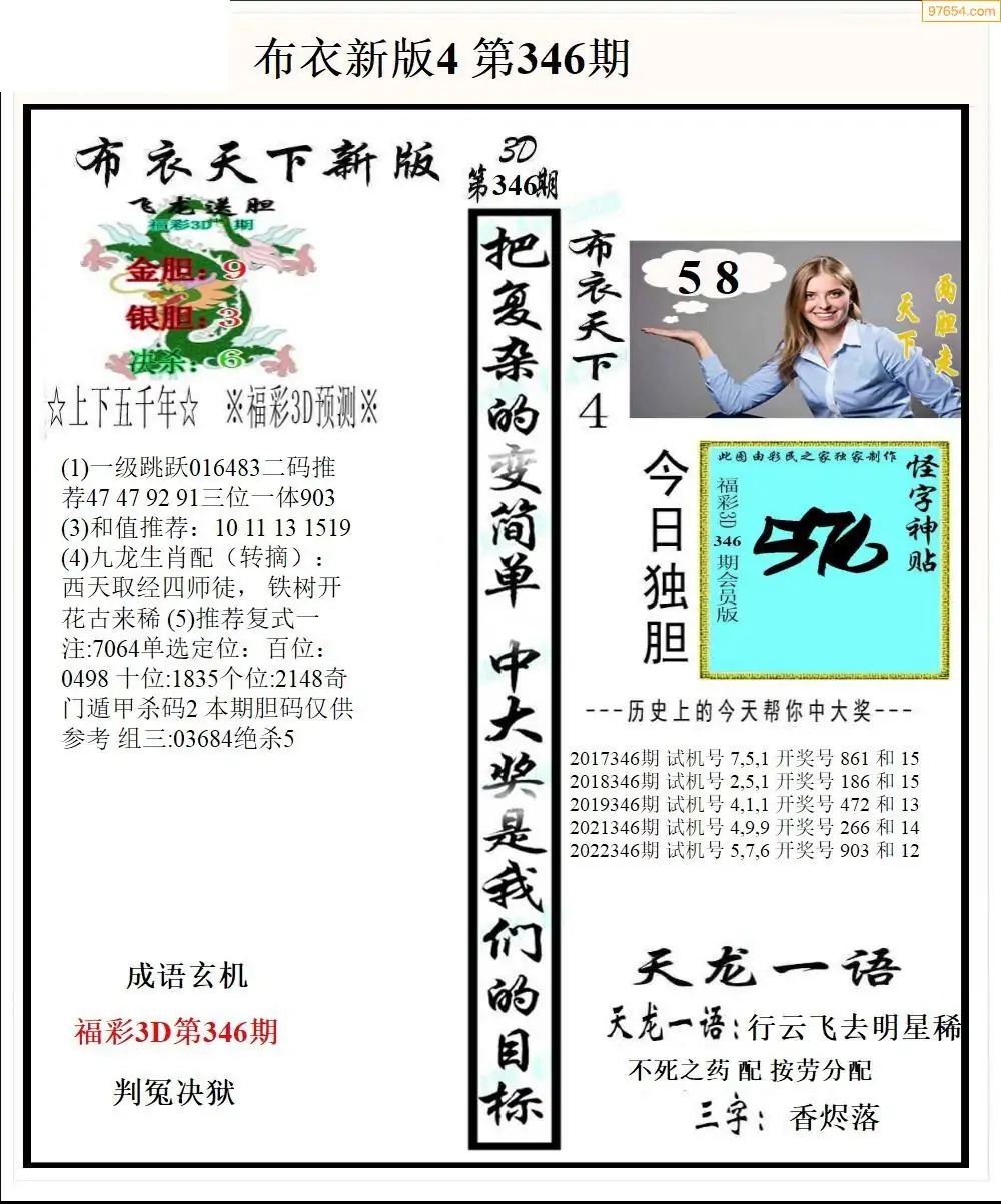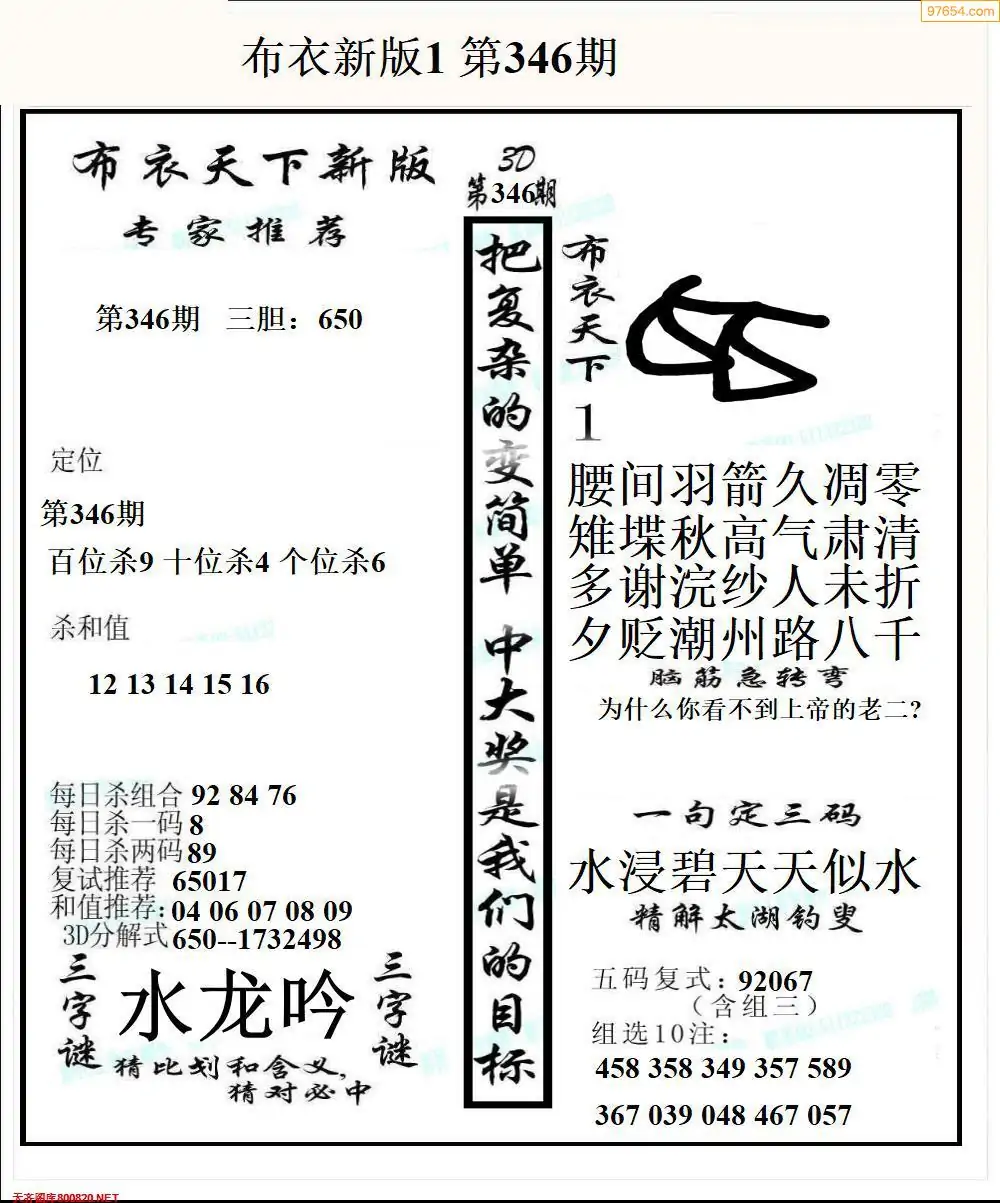 福彩346期3d真精华布衣+布衣早报(转载)
