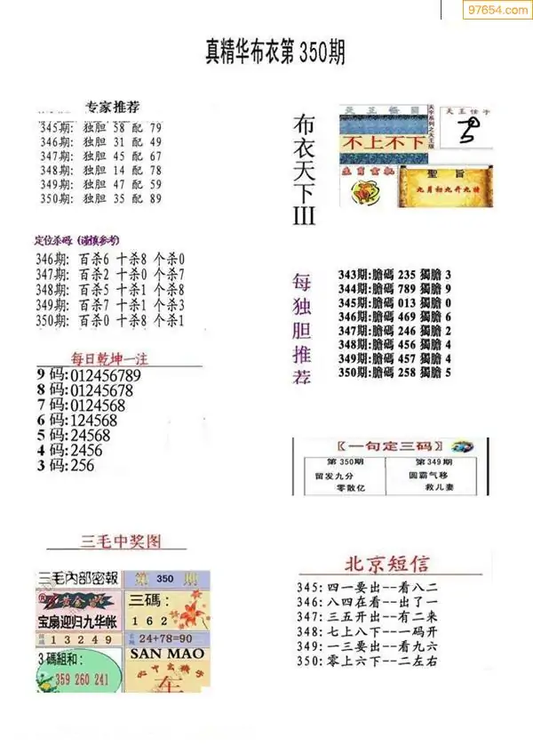 福彩350期3d真精华布衣+布衣早报(转载)