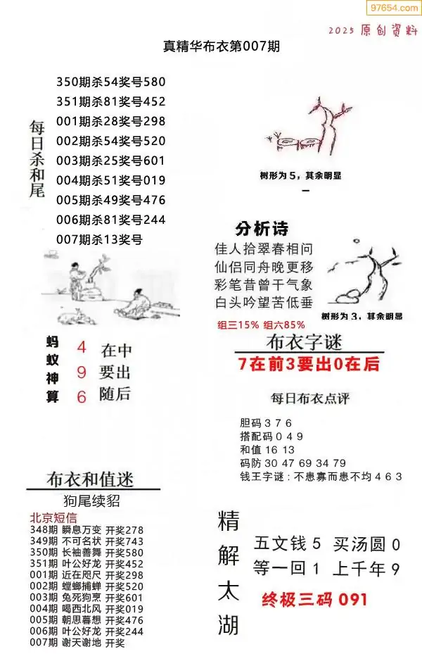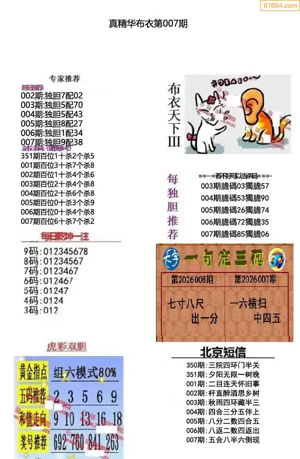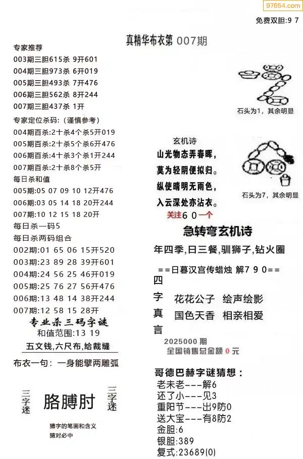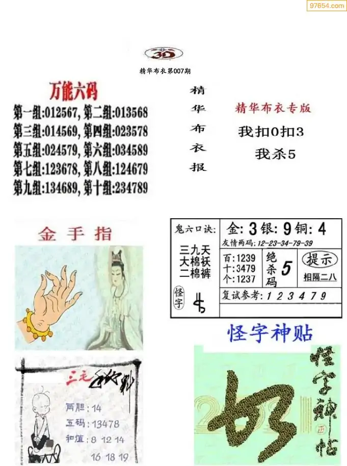 007期真精布衣3d正版布衣123456(原创)