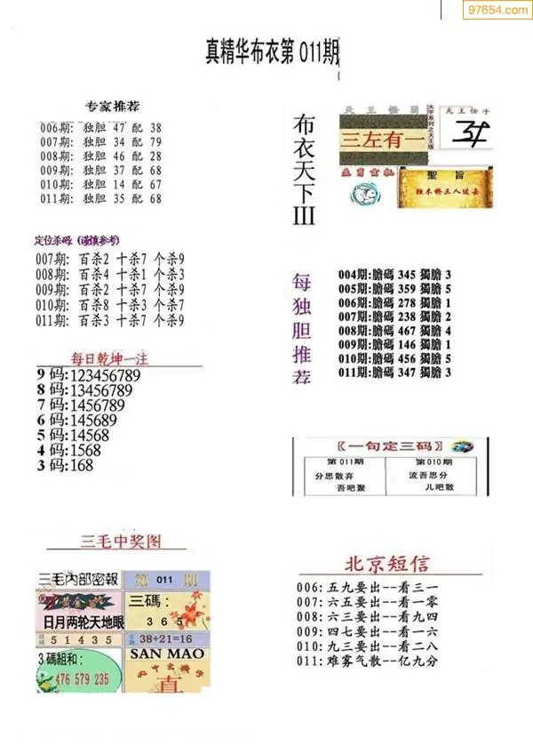 福彩011期3d真精华布衣+布衣早报(转载)