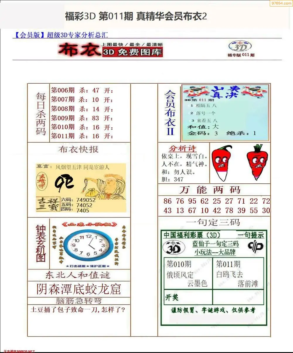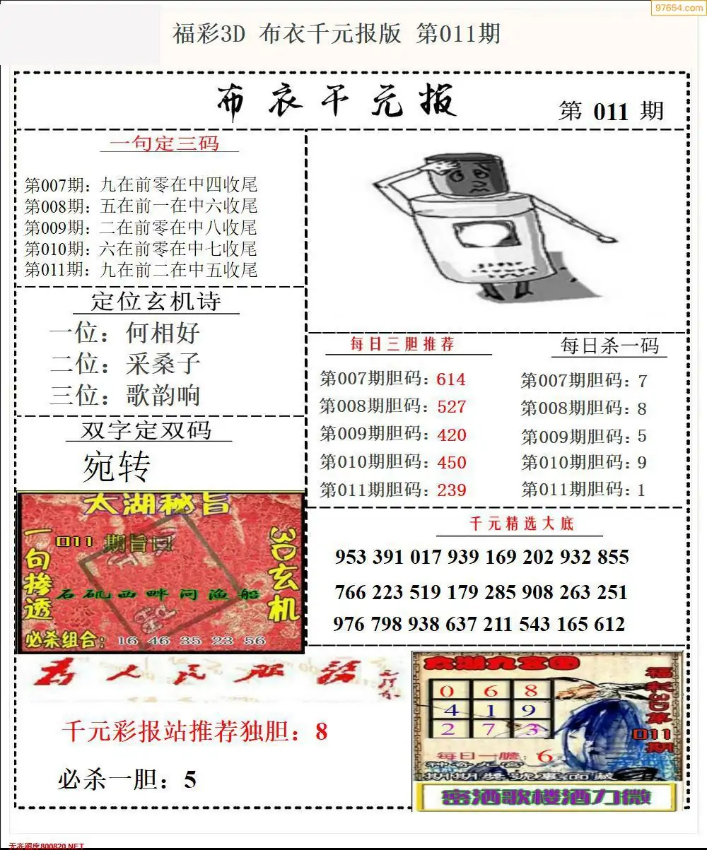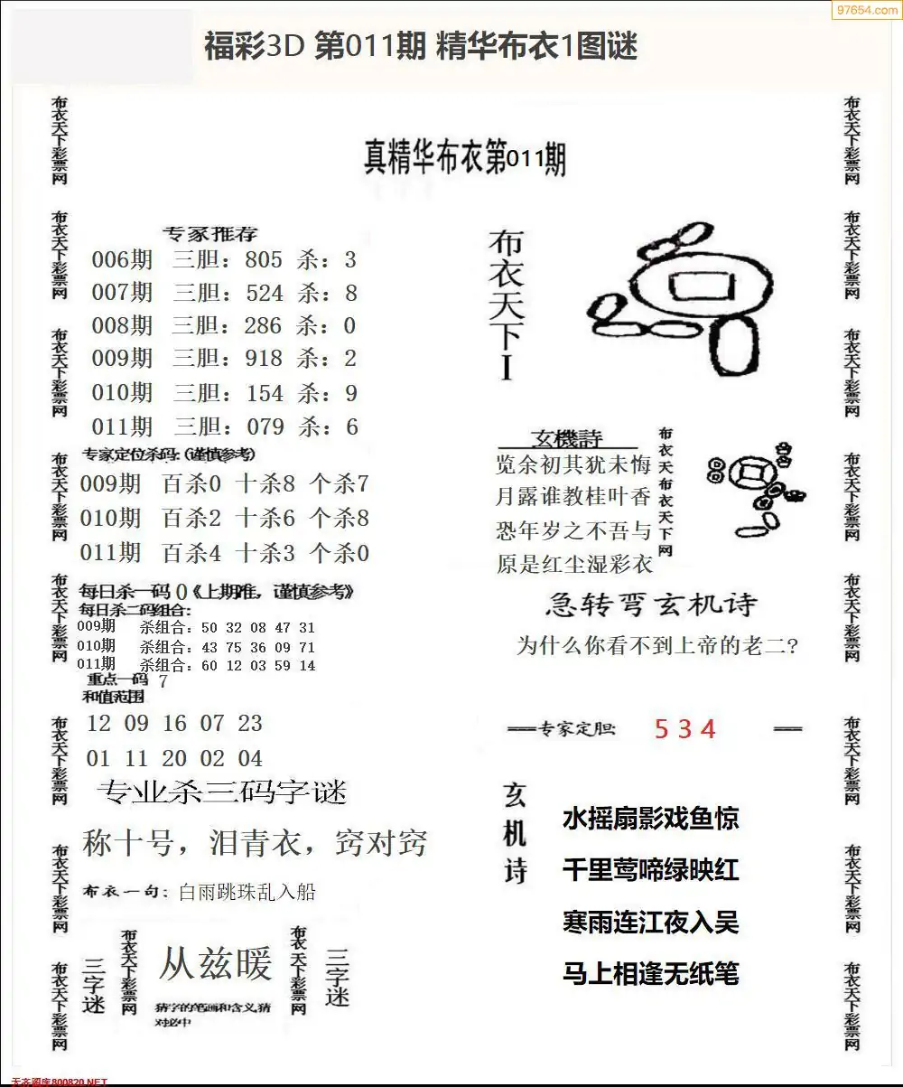 福彩011期3d真精华布衣+布衣早报(转载)
