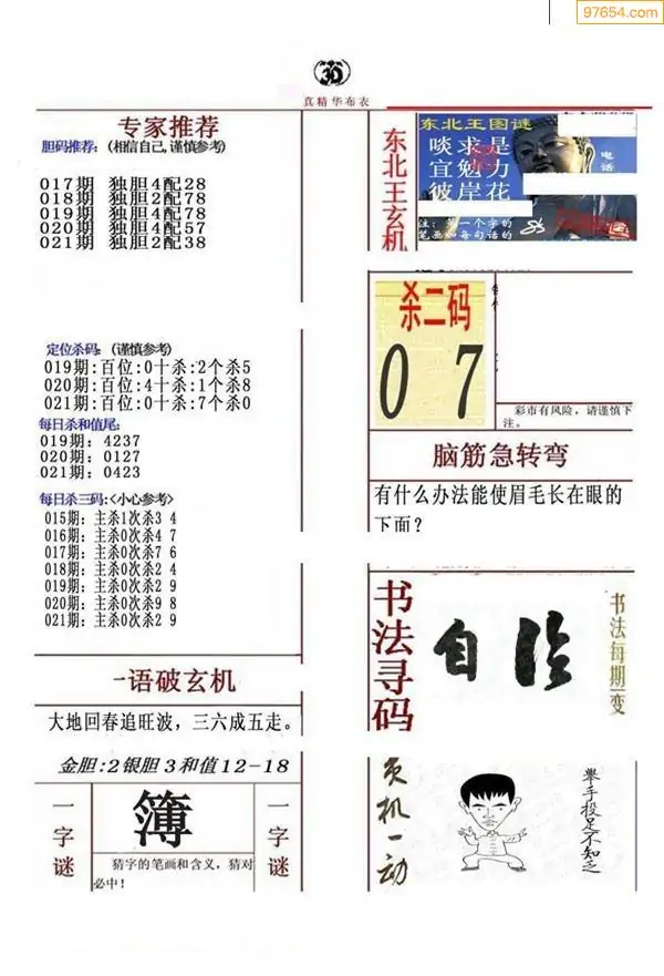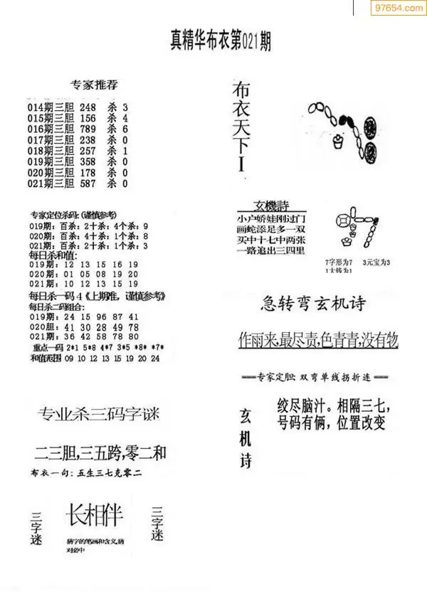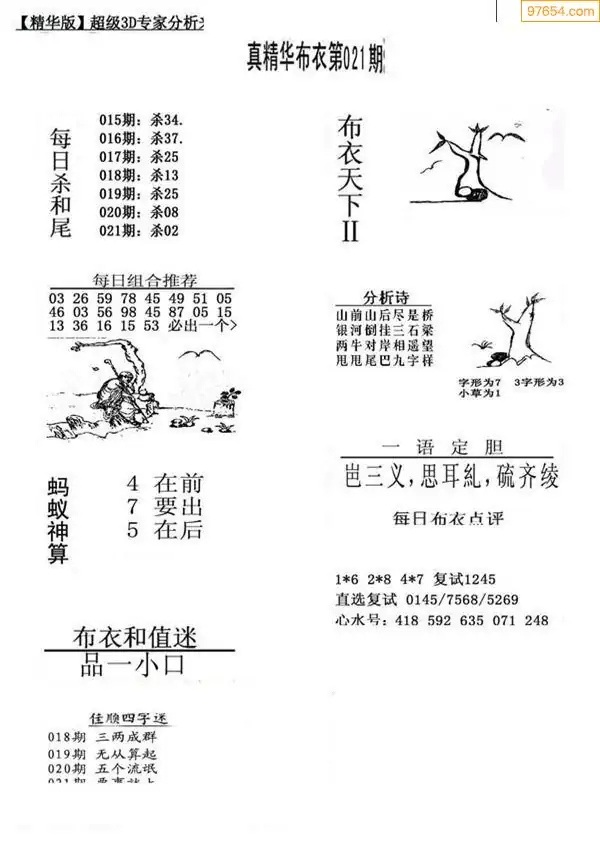 福彩021期3d真精华布衣+布衣早报(转载)