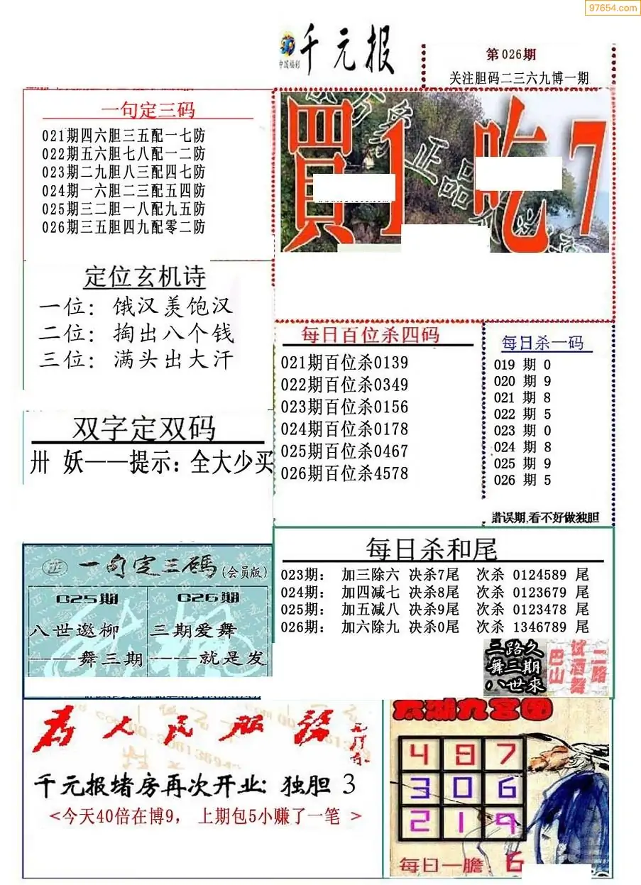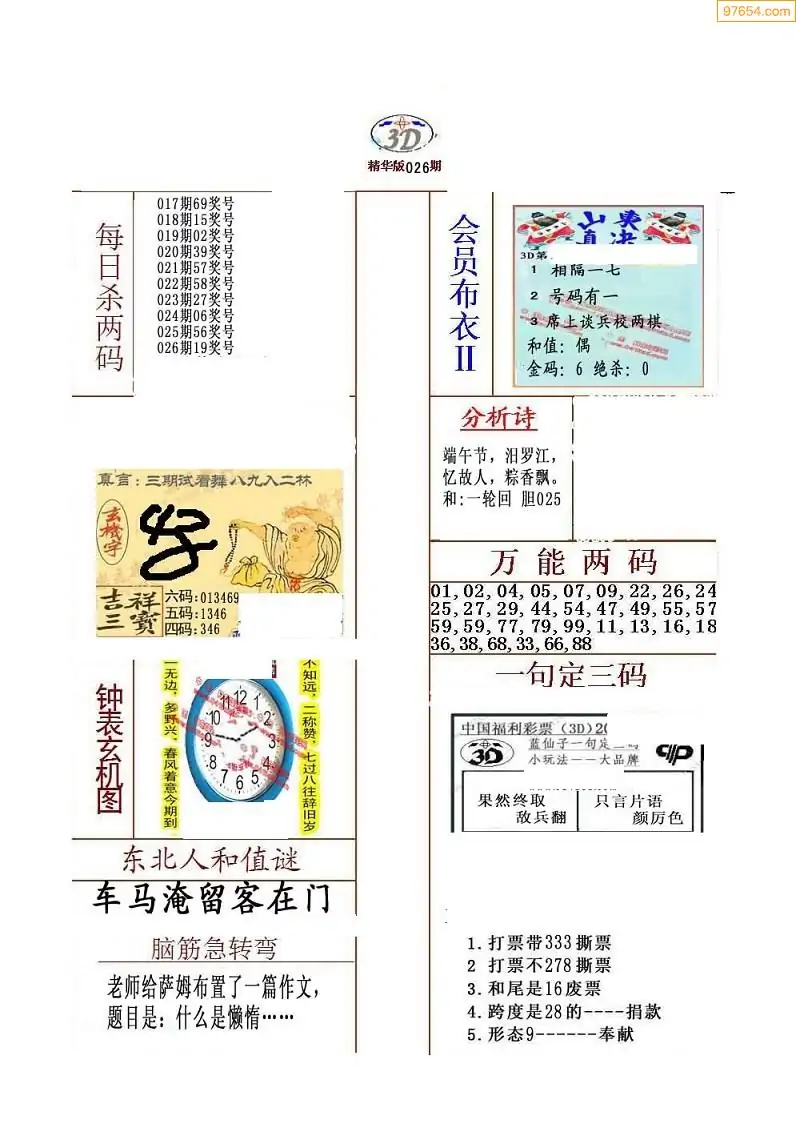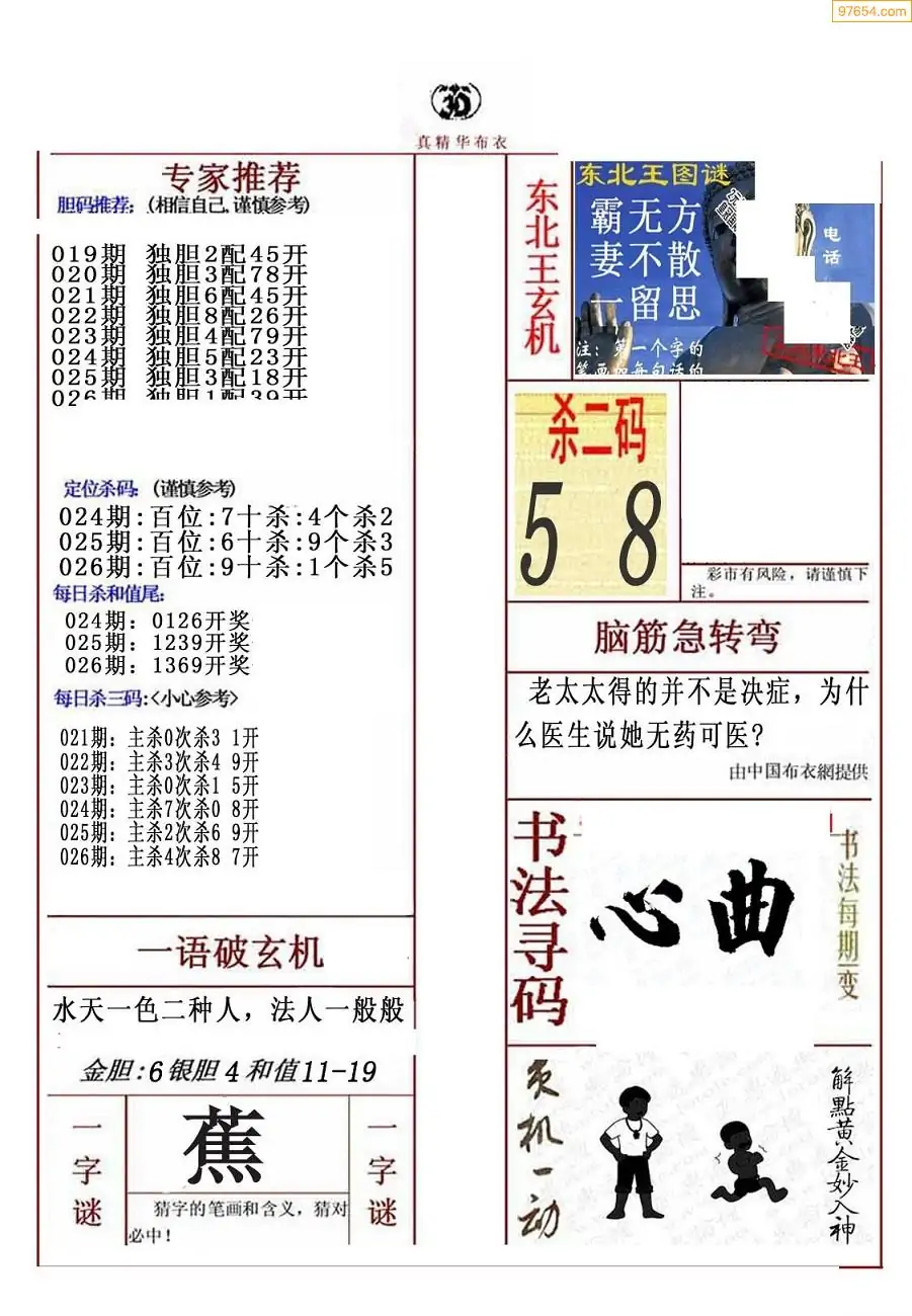 福彩026期3d真精华布衣+布衣早报(转载)