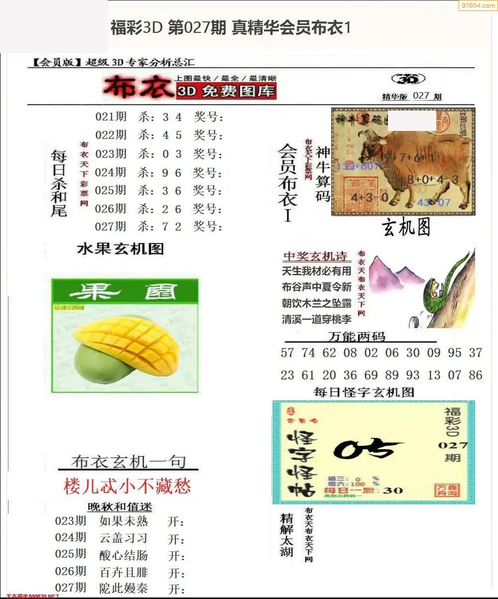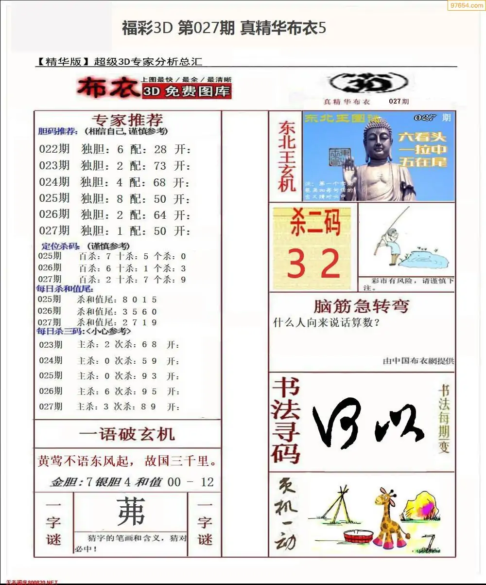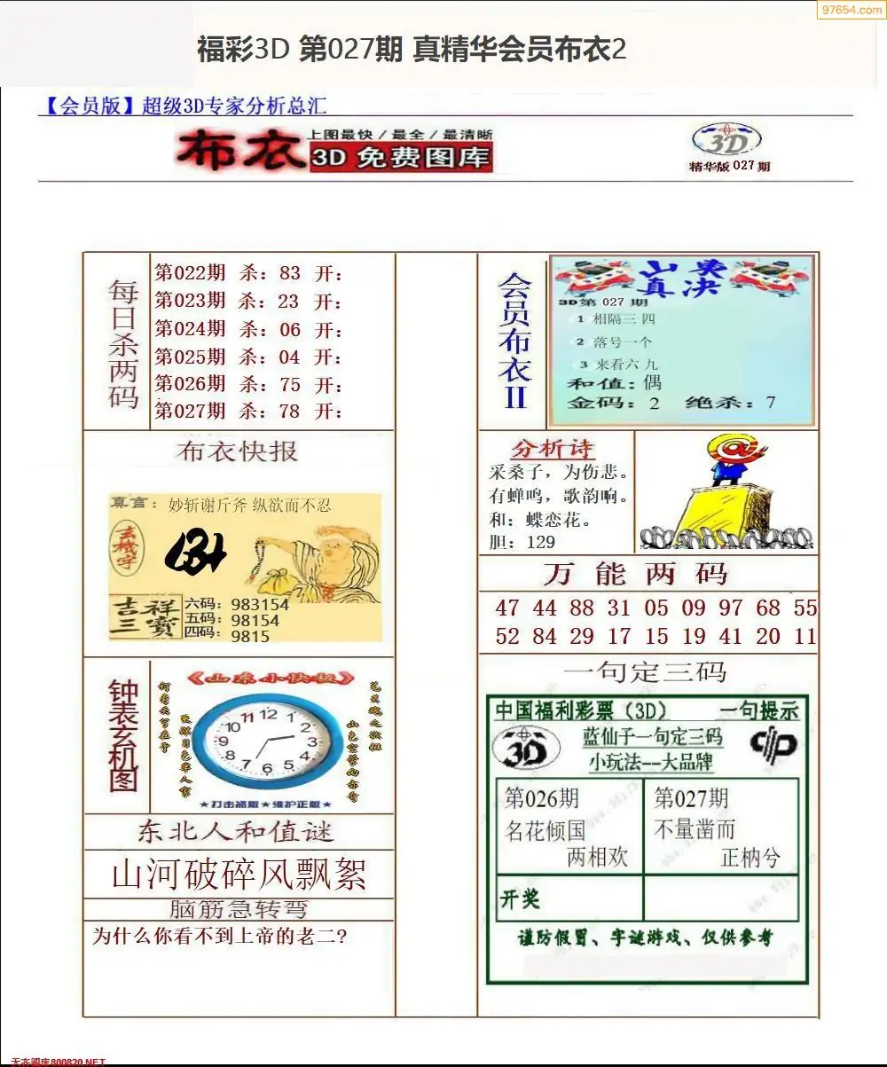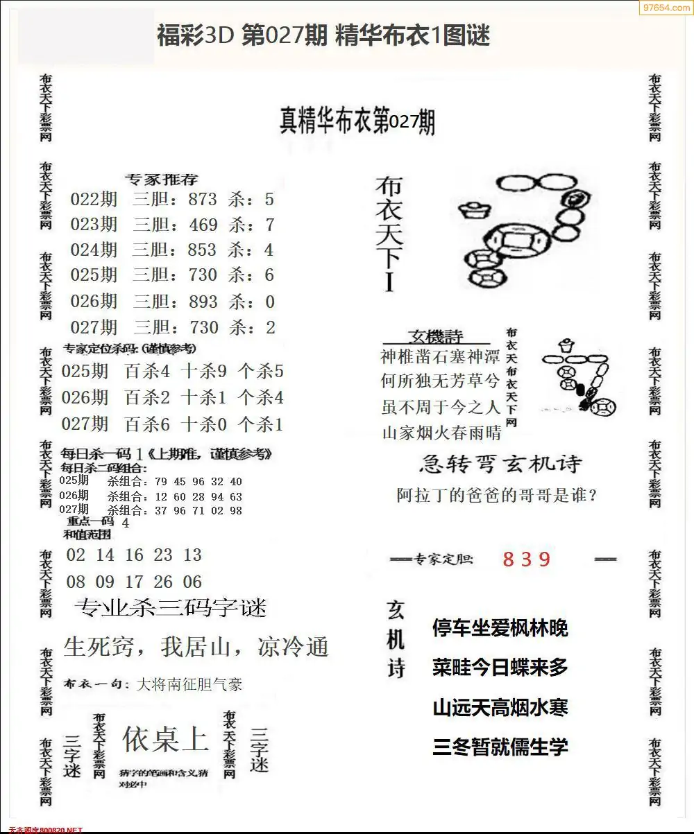 福彩027期3d真精华布衣+布衣早报(转载)