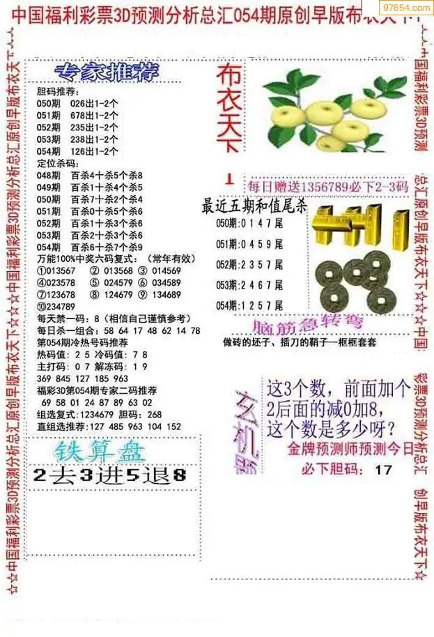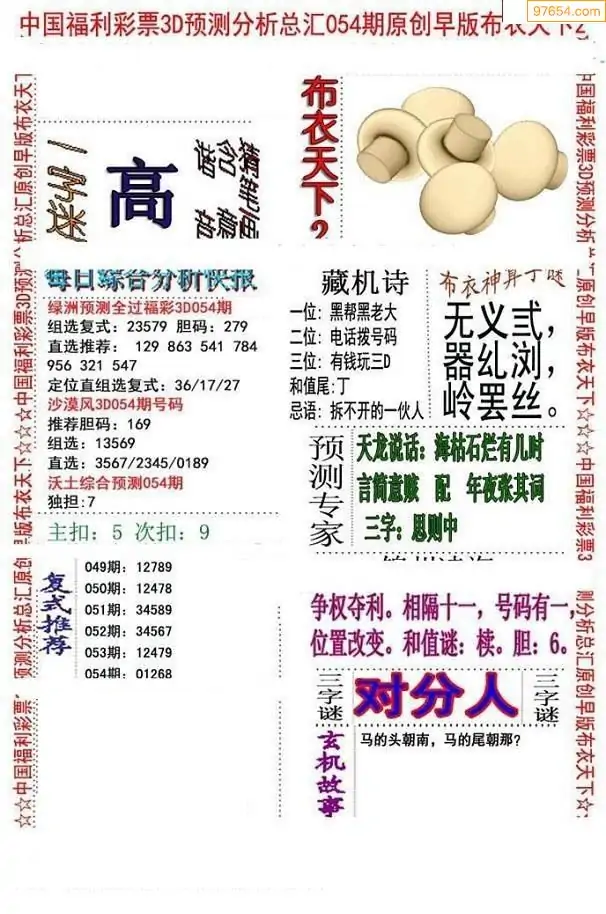 福彩054期3d真精华布衣+布衣早报(转载)