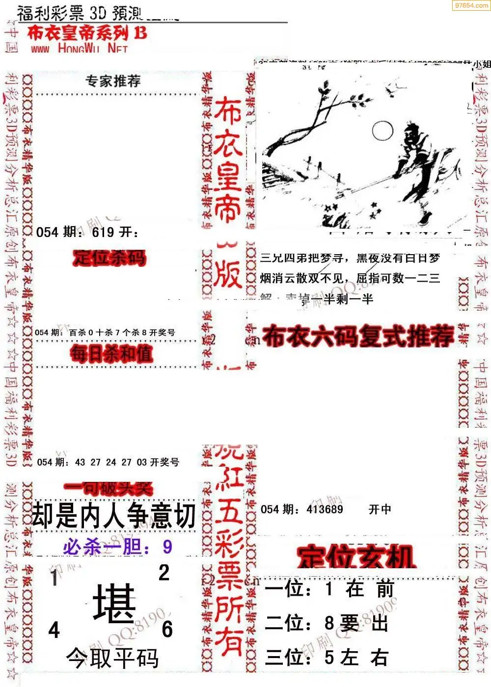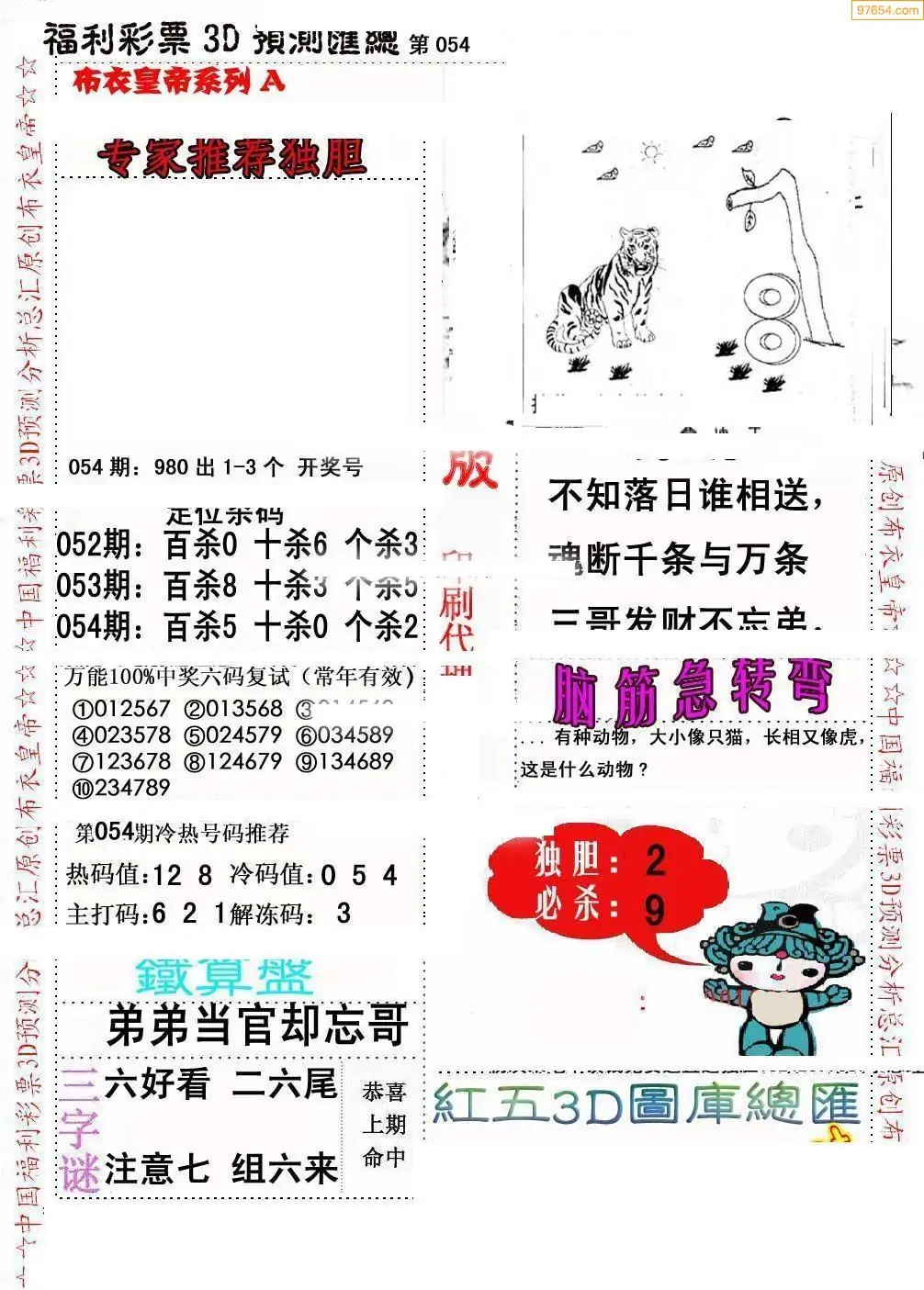 福彩054期3d真精华布衣+布衣早报(转载)