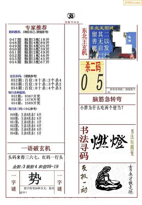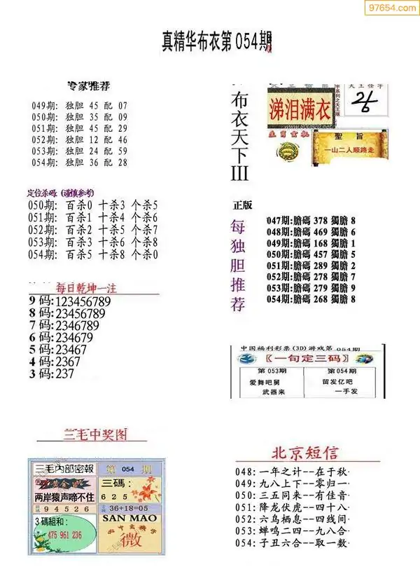 福彩054期3d真精华布衣+布衣早报(转载)