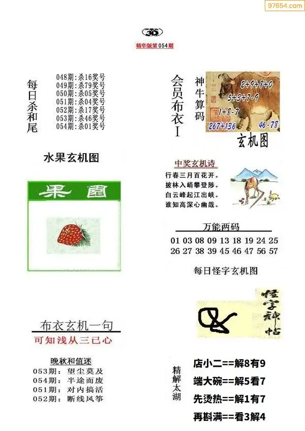 26年054期牛彩布衣精选推荐