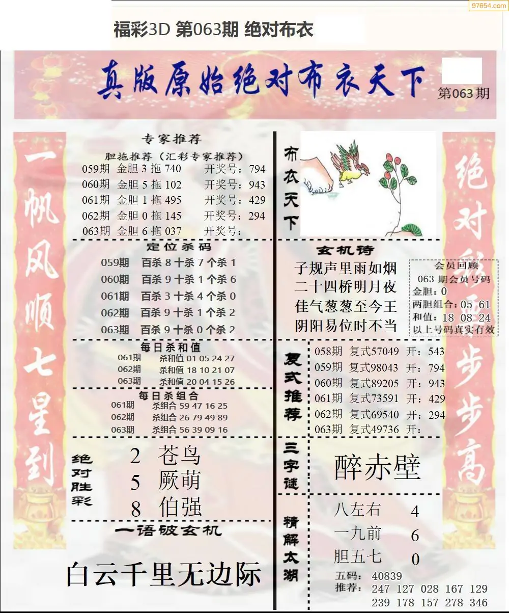 福彩063期3d真精华布衣+布衣早报(转载)