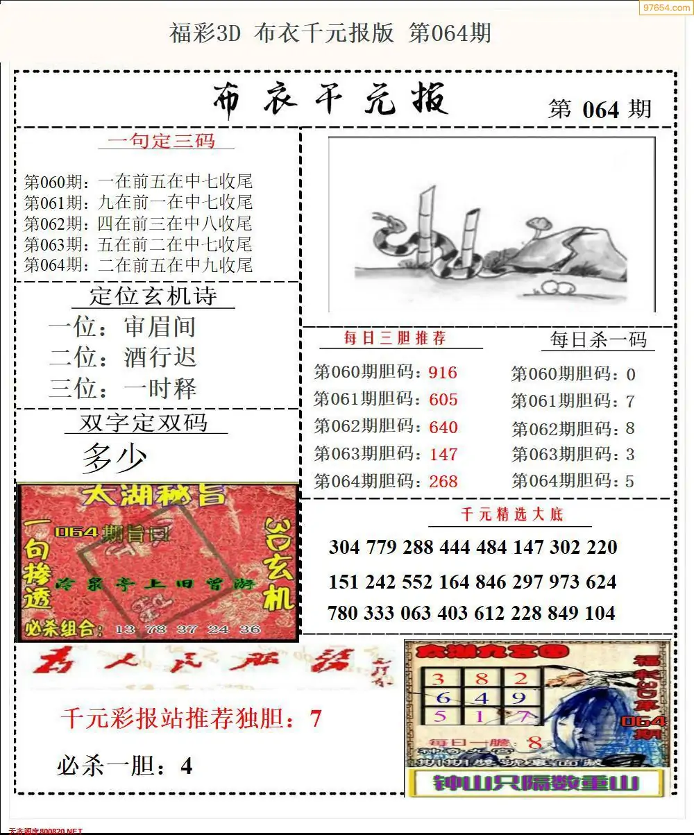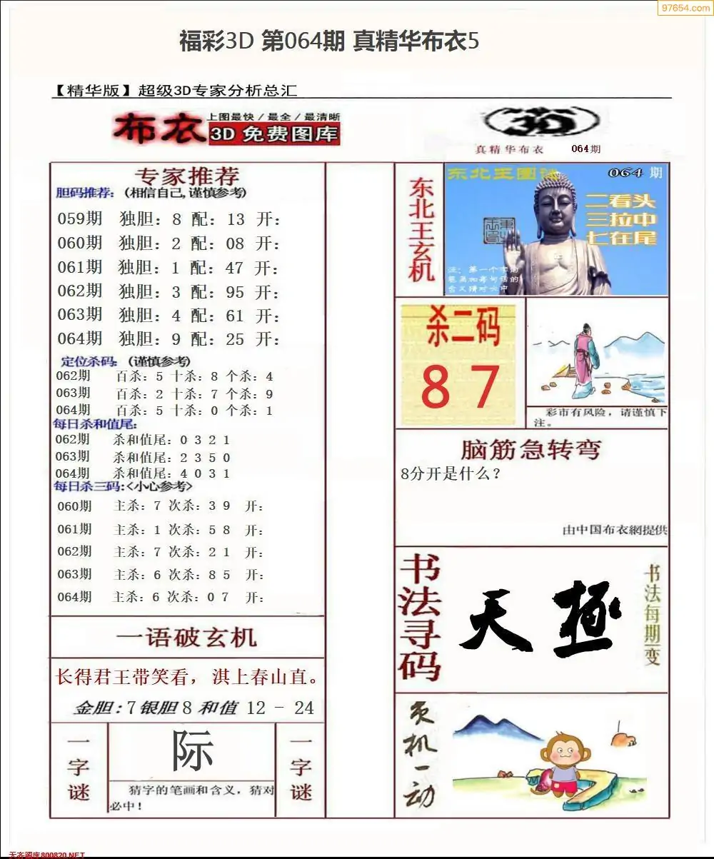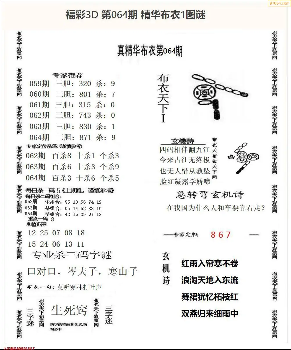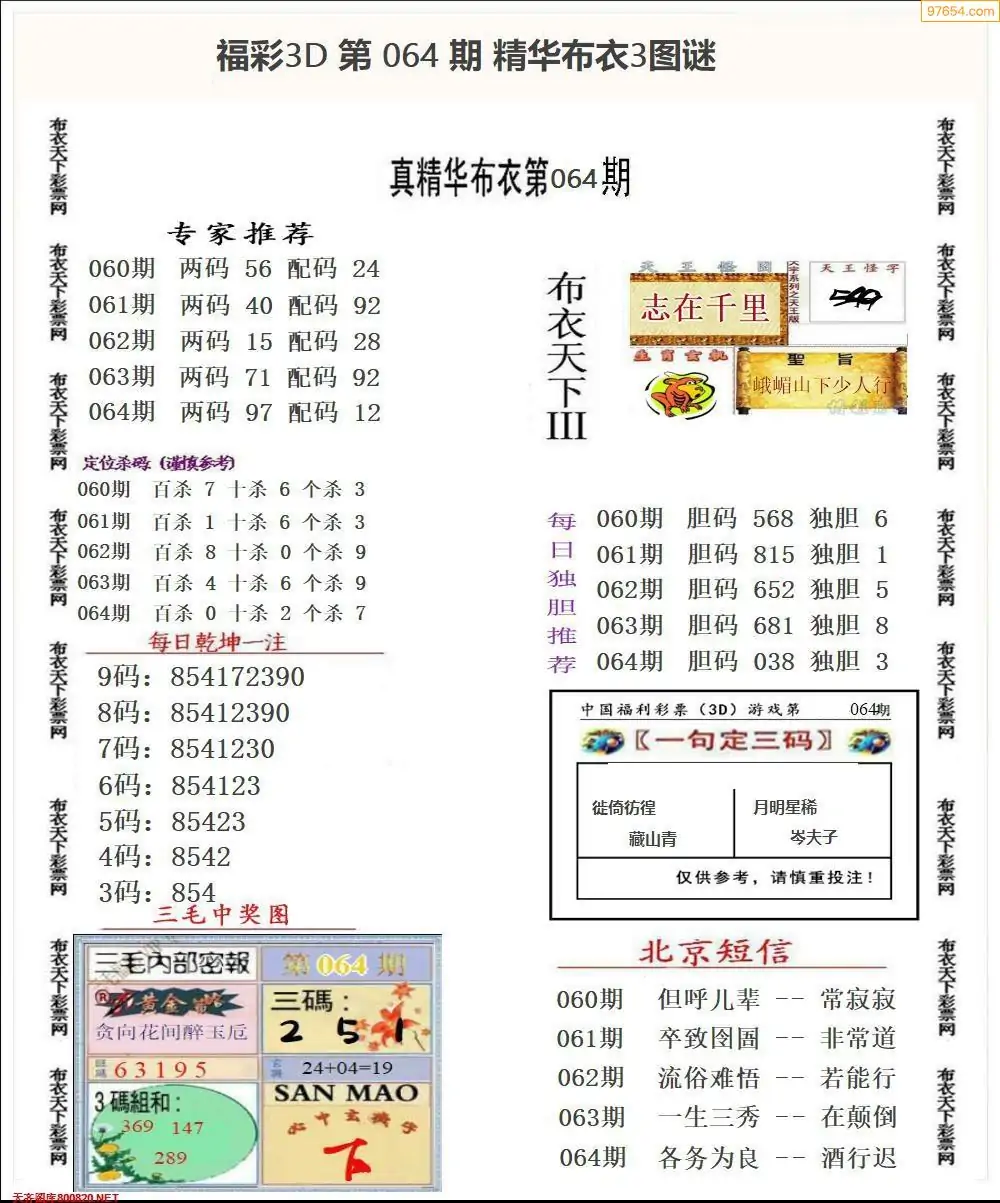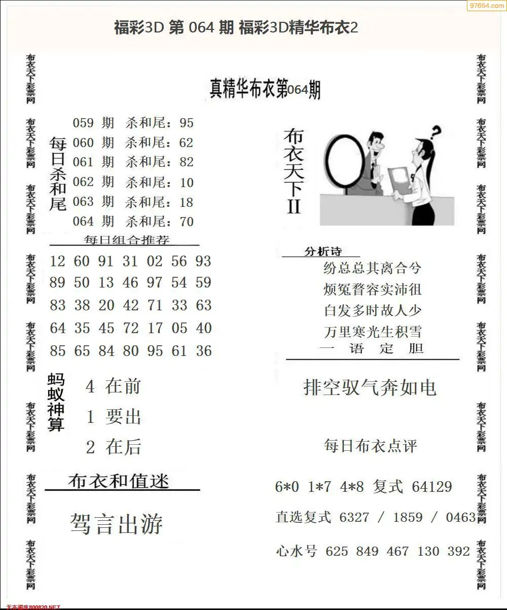 福彩064期3d真精华布衣+布衣早报(转载)