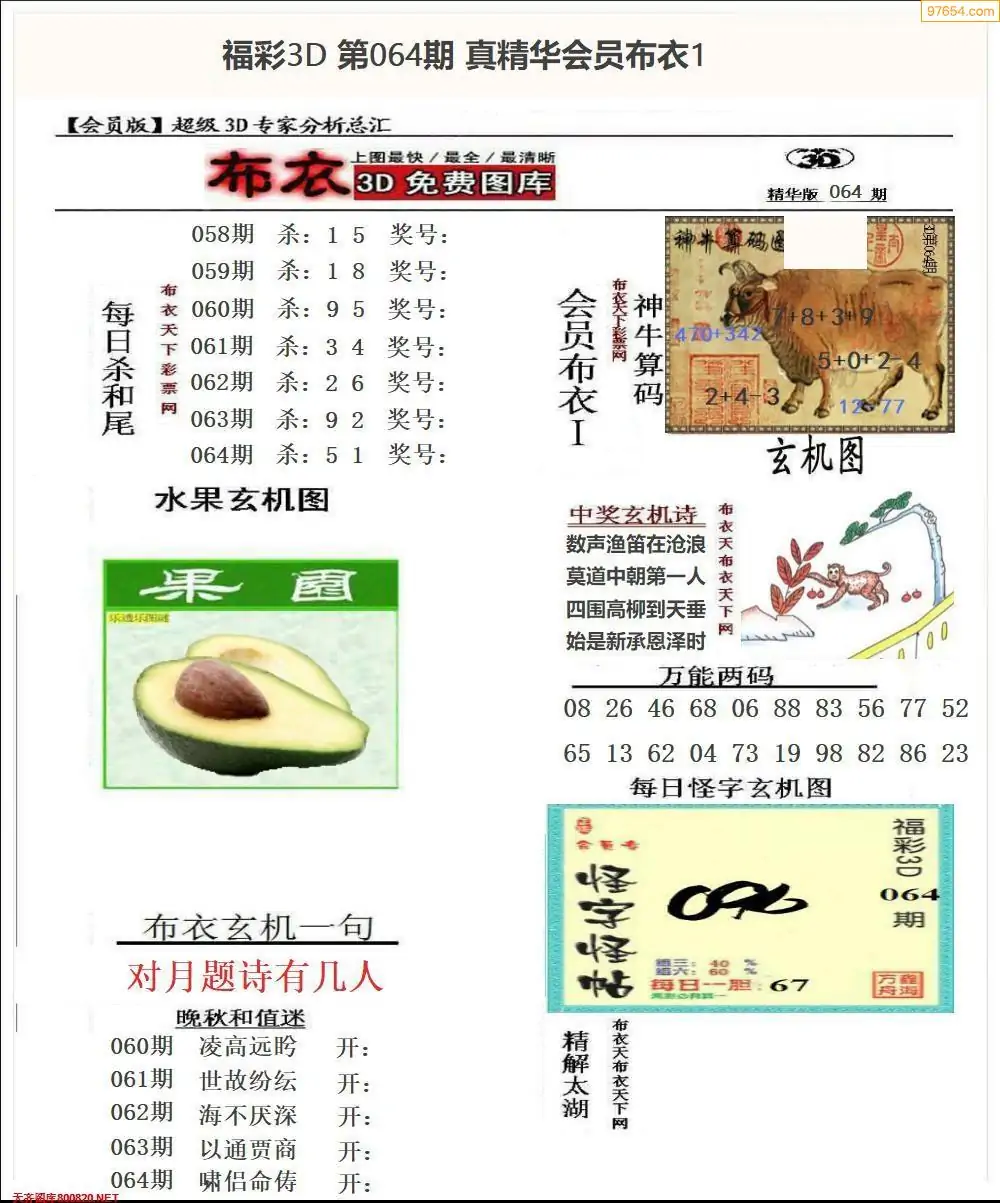064期真精布衣3d正版布衣123456(原创)