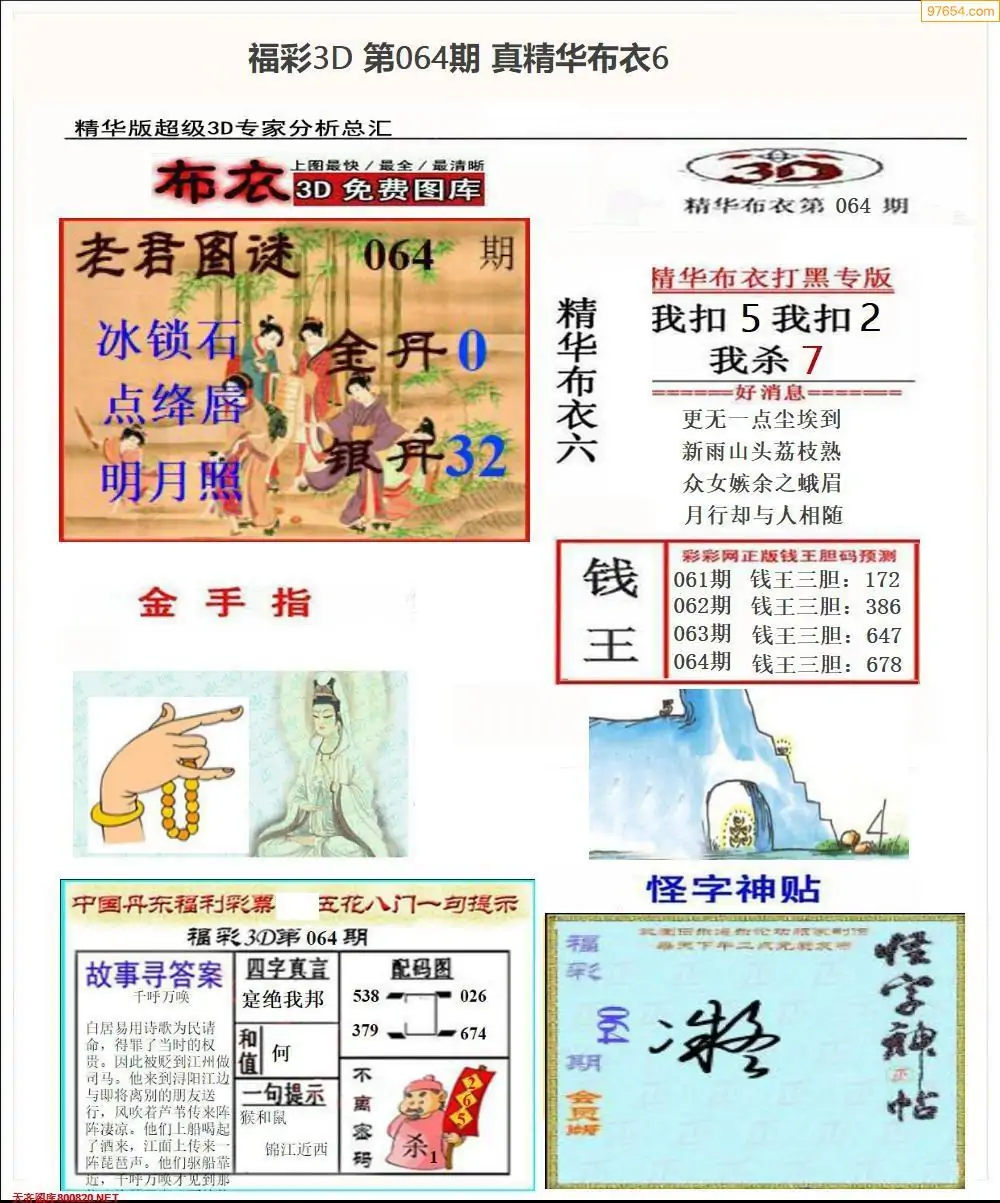 064期3D彩吧图库精华布衣图123456分享