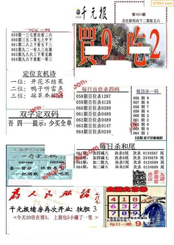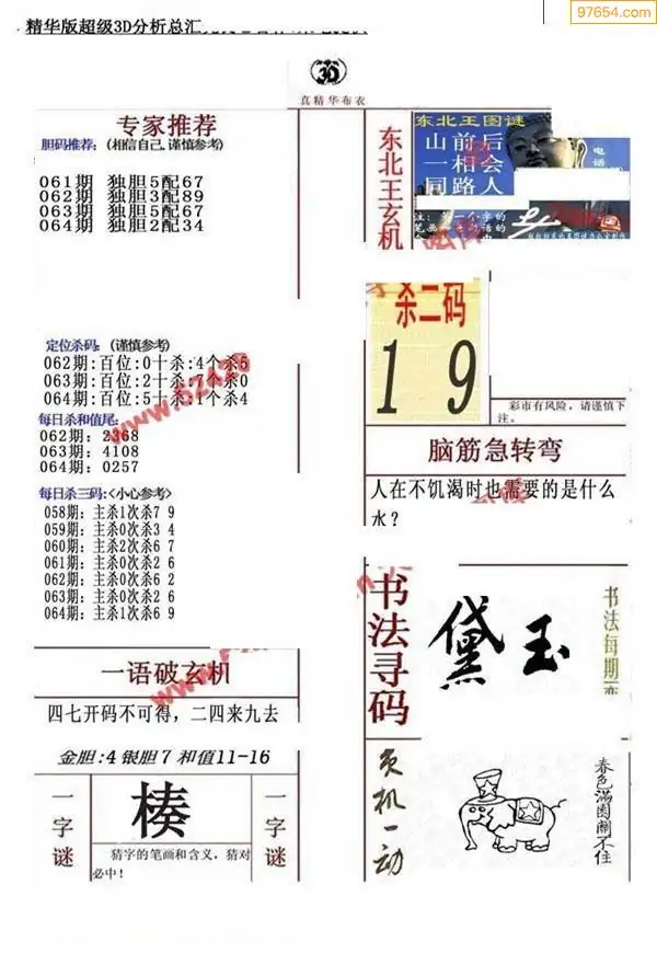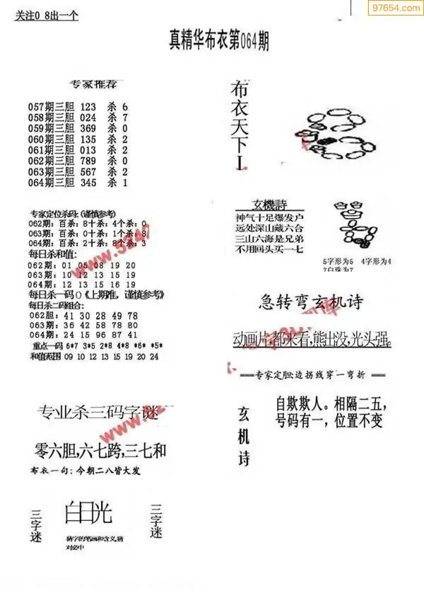 福彩064期3d真精华布衣+布衣早报(转载)