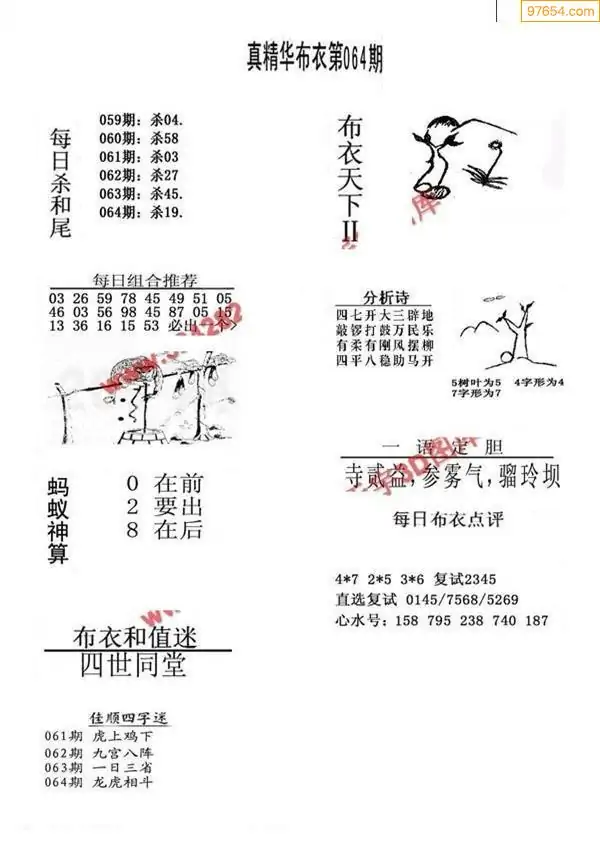 26年064期牛彩布衣精选推荐