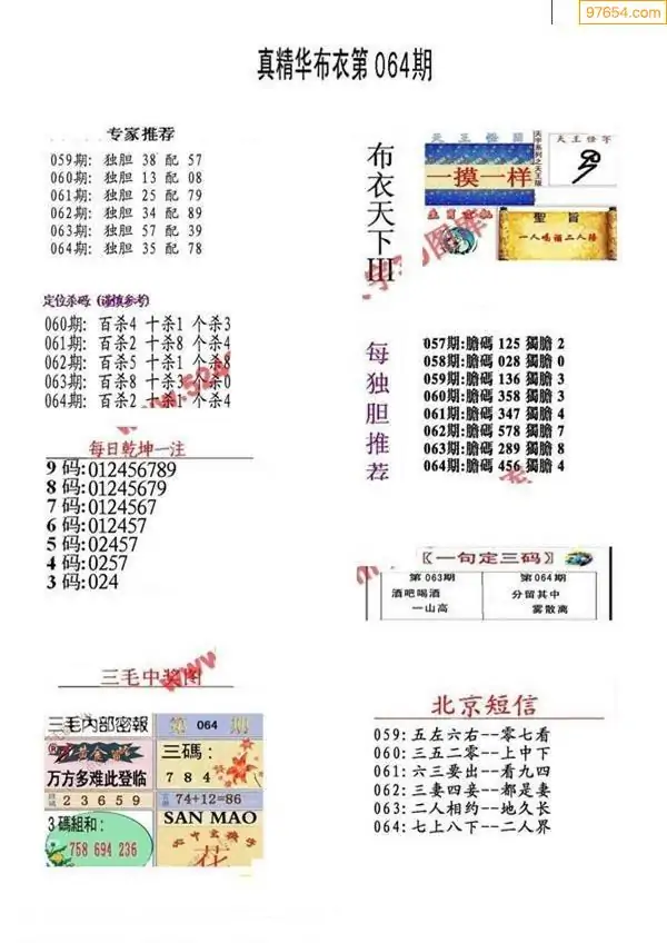 064期真精布衣3d正版布衣123456(原创)