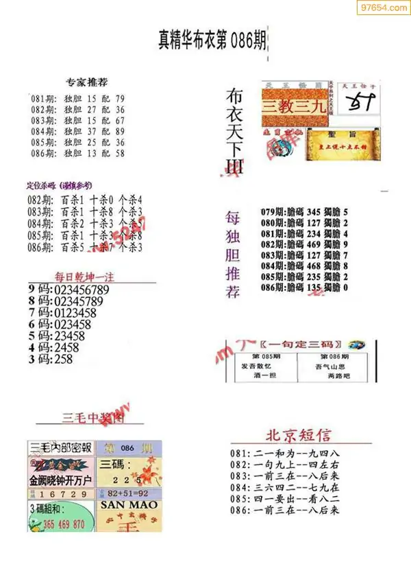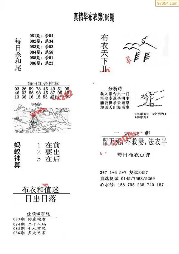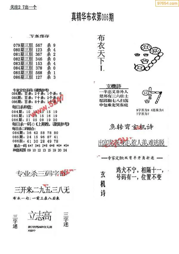 福彩086期3d真精华布衣+布衣早报(转载)